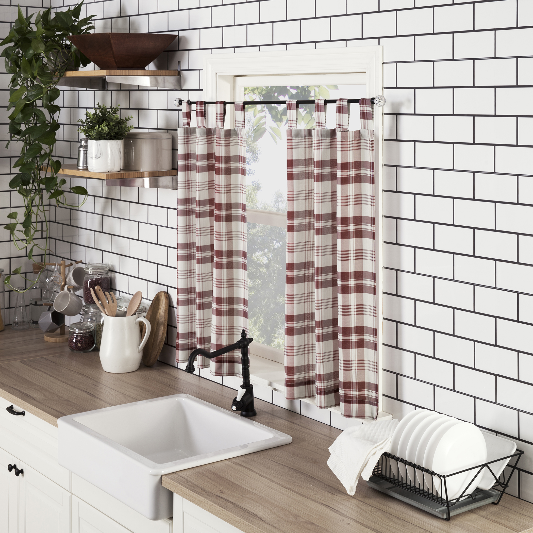 The No. 918 Blair Kitchen Curtain Valance and Tiers Set adds country charm to any kitchen, bathroom, or other small window. Built-in tabs allow for easy hanging on a standard curtain rod up to 1 ½" in diameter. Sold as a three (3) piece set includes 1 valance and 2 tier curtains. Sold as individual panels measuring 52" width by 24" length. Measure carefully before selecting your desired size and quantity. Machine wash cold on gentle cycle. Use non-chlorine bleach when needed. Tumble dry on low heat and use a cool iron as needed.