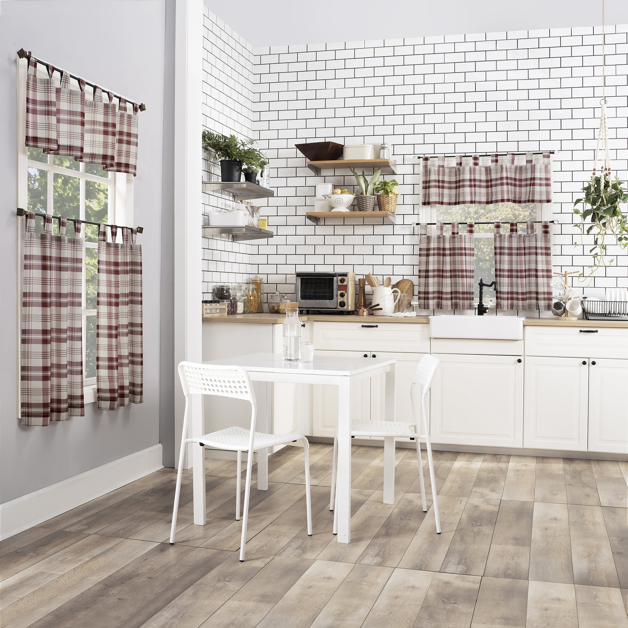 - Three (3) piece set includes 1 valance and 2 tier curtains