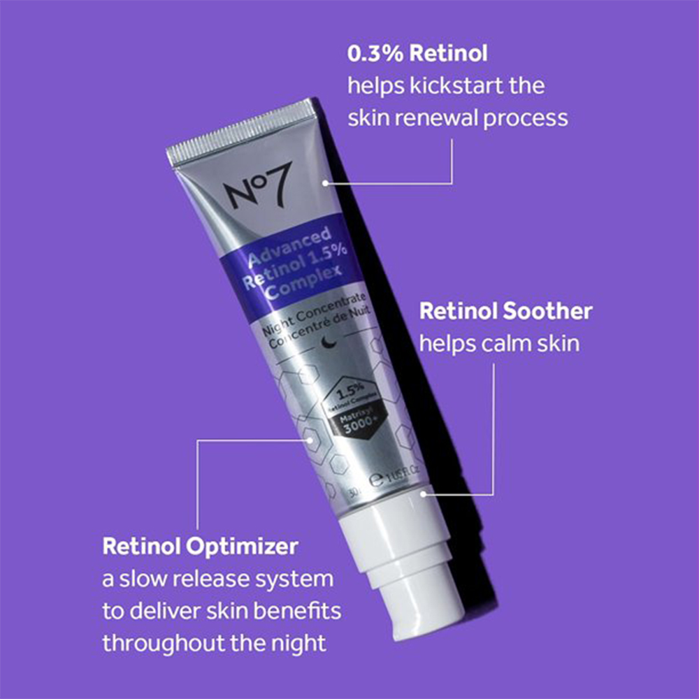 - Leverages No7’s unique 1.5% Retinol Complex and Matrixyl 3000+ for visibly transformed skin