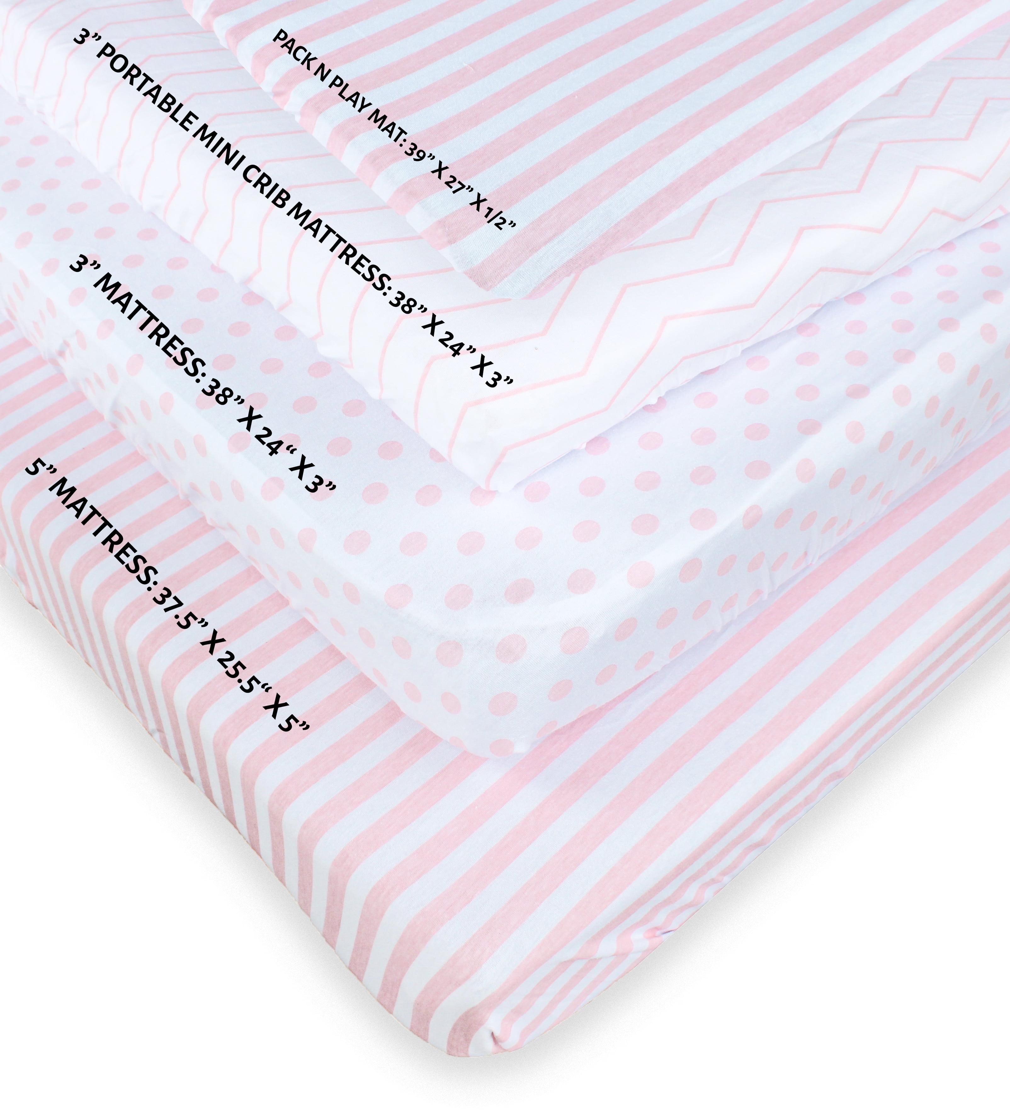 - OUR DESIGN- Our mini crib sheets are printed in classic stripes, polka dots and chevron. They come in a soft pink and white print perfect for any girl baby shower gift!