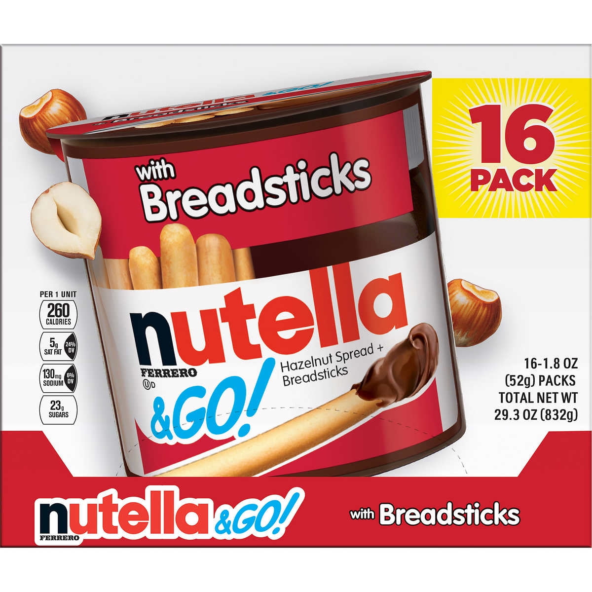 Nutella and Go Hazelnut Spread with Pretzel Sticks, 1.9 oz, 16 ct Product Details: -Hazelnut Spread with Pretzel Sticks -1.9 oz cup -16 ct -Kosher -0g trans fat per serving -For best results, do not refrigerateNutella and Go Hazelnut Spread with Pretzel Sticks, 1.9 oz, 16 ct