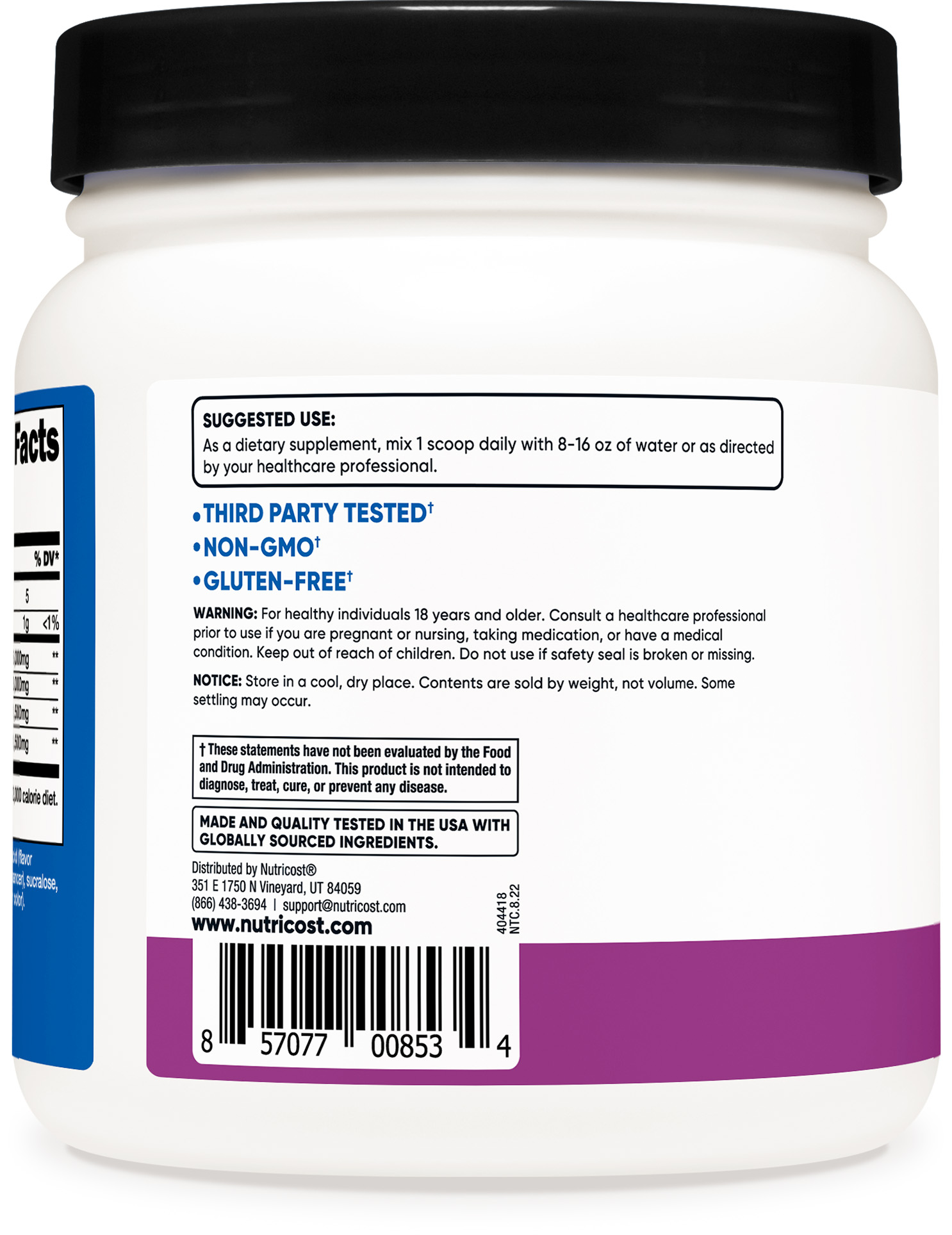 Nutricost BCAA Grape Flavored Powder offers an optimal 2:1:1 amino acid blend. Branched-chain amino acids are essential compounds for your body. Nutricost BCAAs are vegetarian friendly, non-gmo, gluten free and 3rd party tested by iso-accredited laboratories. Nutricost, located and headquartered in the USA, only uses the best ingredients to ensure maximum quality and to help you feel your best! By keeping our supplement recipes simple and clean, you get the best experience possible with Nutricost. Our supplements are manufactured in a GMP-compliant and FDA-registered facility; and each batch of every product is tested by independent, ISO-accredited laboratories. These statements have not been evaluated by the Food and Drug Administration. This product is not intended to diagnose, treat, cure, or prevent any disease.