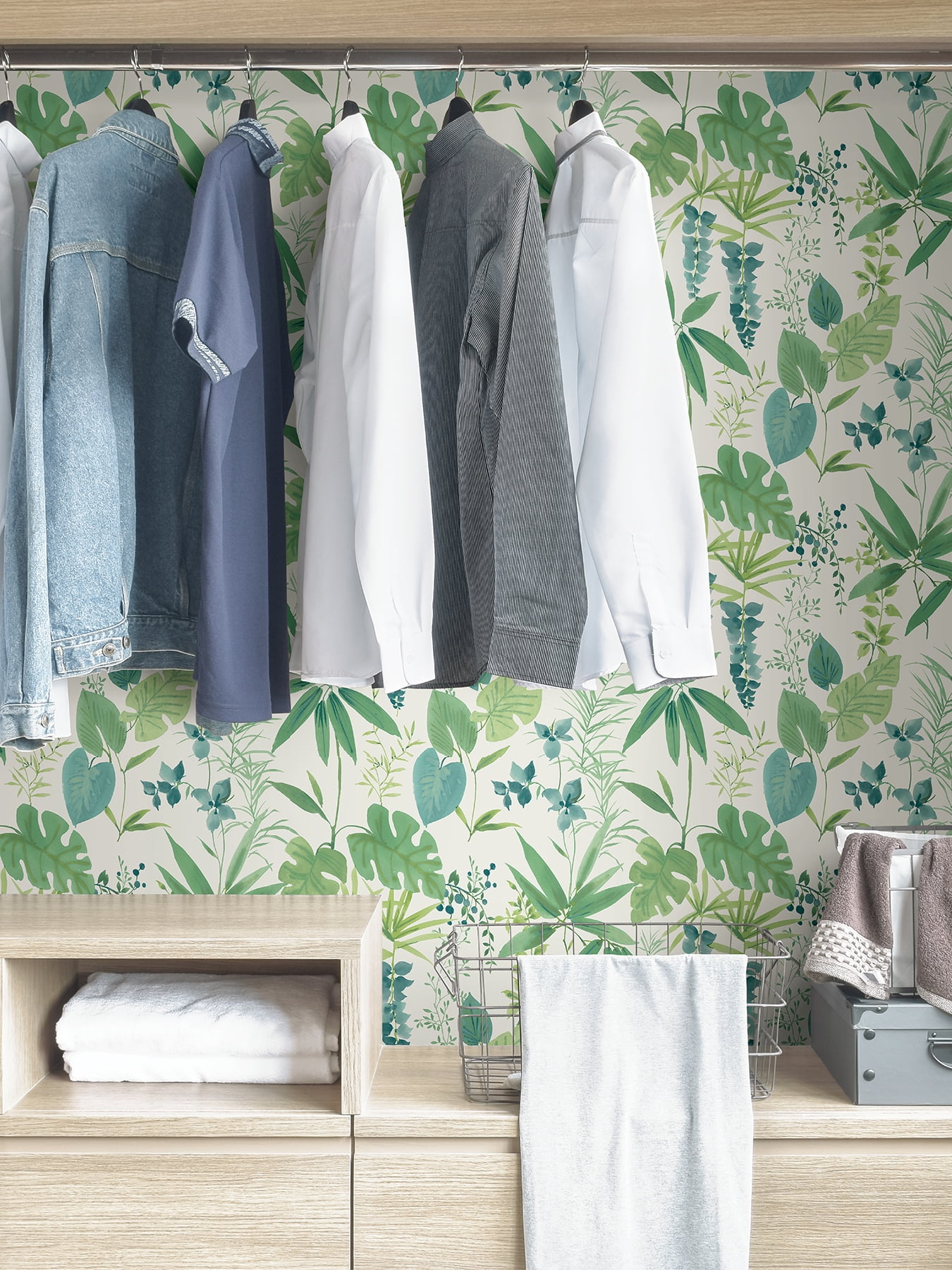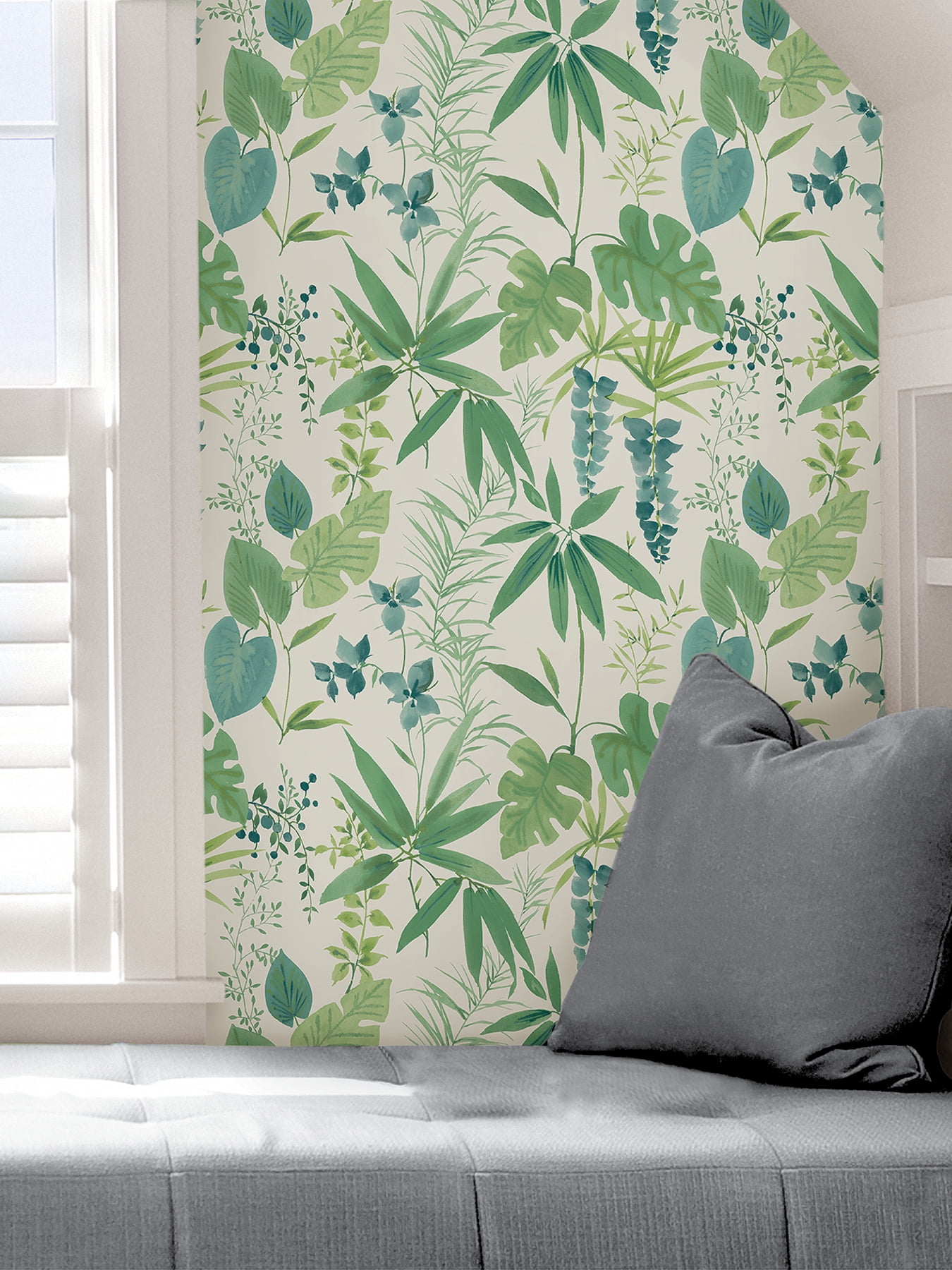Give your walls a modern and fresh new look with this flourishing botanical design. The water color printing effect softens the spectrum of green hues. Green Maldives Peel and Stick Wallpaper comes on one roll that measures 20.5 inches wide by 18 feet long. Peel and stick NuWallpaper goes up in minutes and comes down in seconds. Printed on a premium substrate that is completely removable and will not damage walls, this new peel and stick wallpaper solution saves you both the time and money of ordinary wallpaper. Simply peel and stick to create a gorgeous look on any smooth, flat surface
