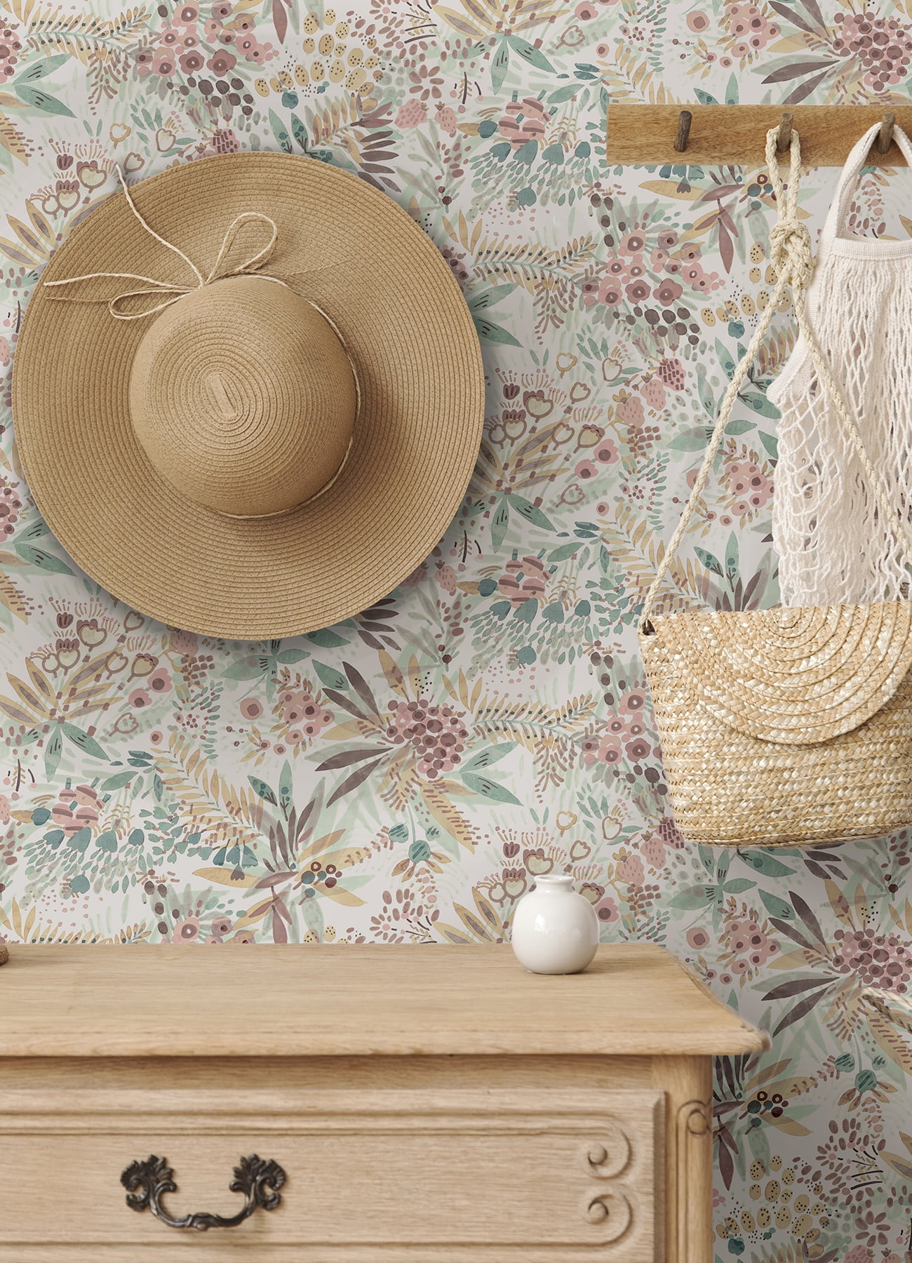 - Pastel floral peel and stick wallpaper, Peel and stick to apply, pull up to remove, NuWallpaper is safe for walls and leaves no sticky residue behind
