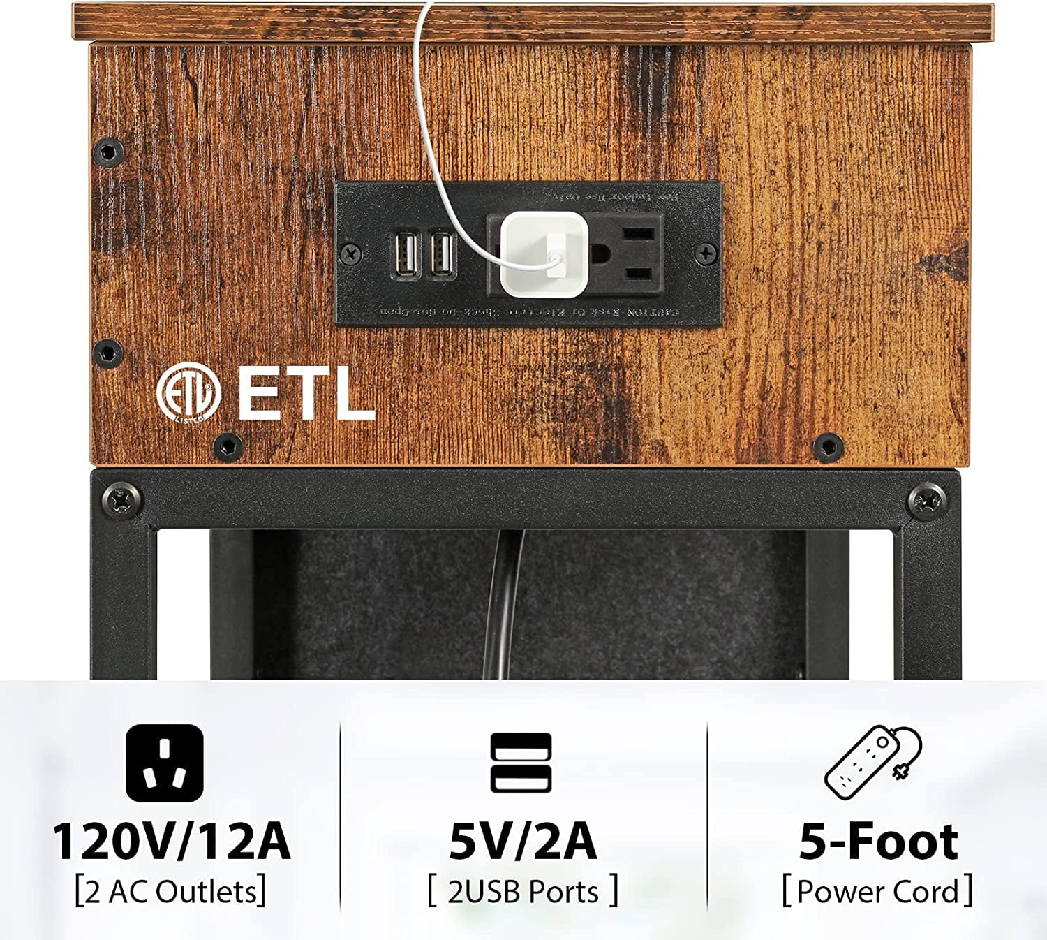 - [Sofa Side Table with Charging Station] 2 Standard Plug Outlets & 2 USB Ports helps you charge your phone, tablet, lamp and game console at the same time.5ft extension cord gives you enough distance to move it.