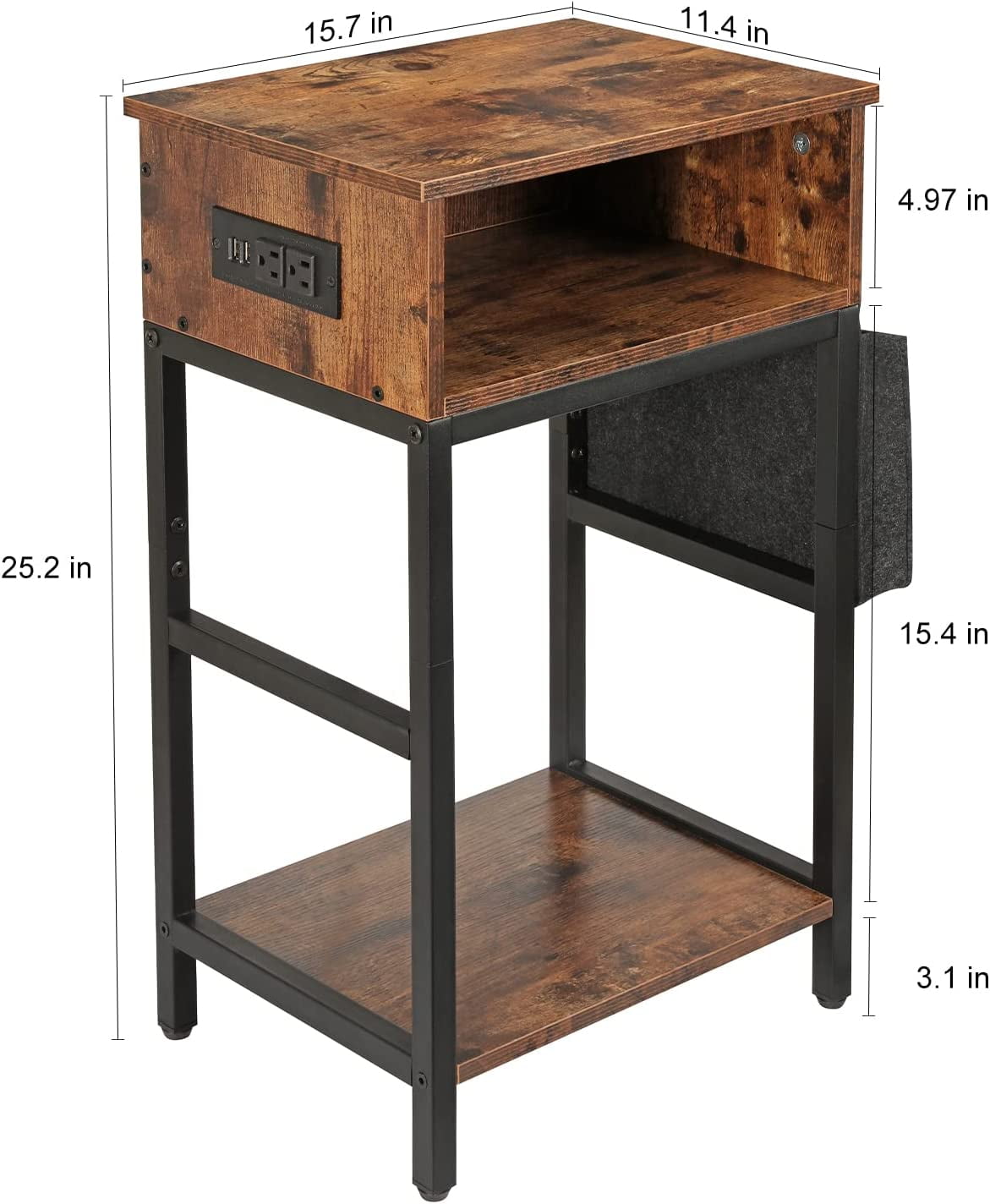 Plug in your phone and charge your lamp and tablet? No problem! This end table with two 120V/2A outlets and two 5V/2A USB ports will have you covered. 4 adjustable feet accompanied with each multi-purpose side table to ensure stability and protect floor. Drawer storage for private items, bottom shelf can be used to display potted plants, storage bag storage for magazine newspapers.