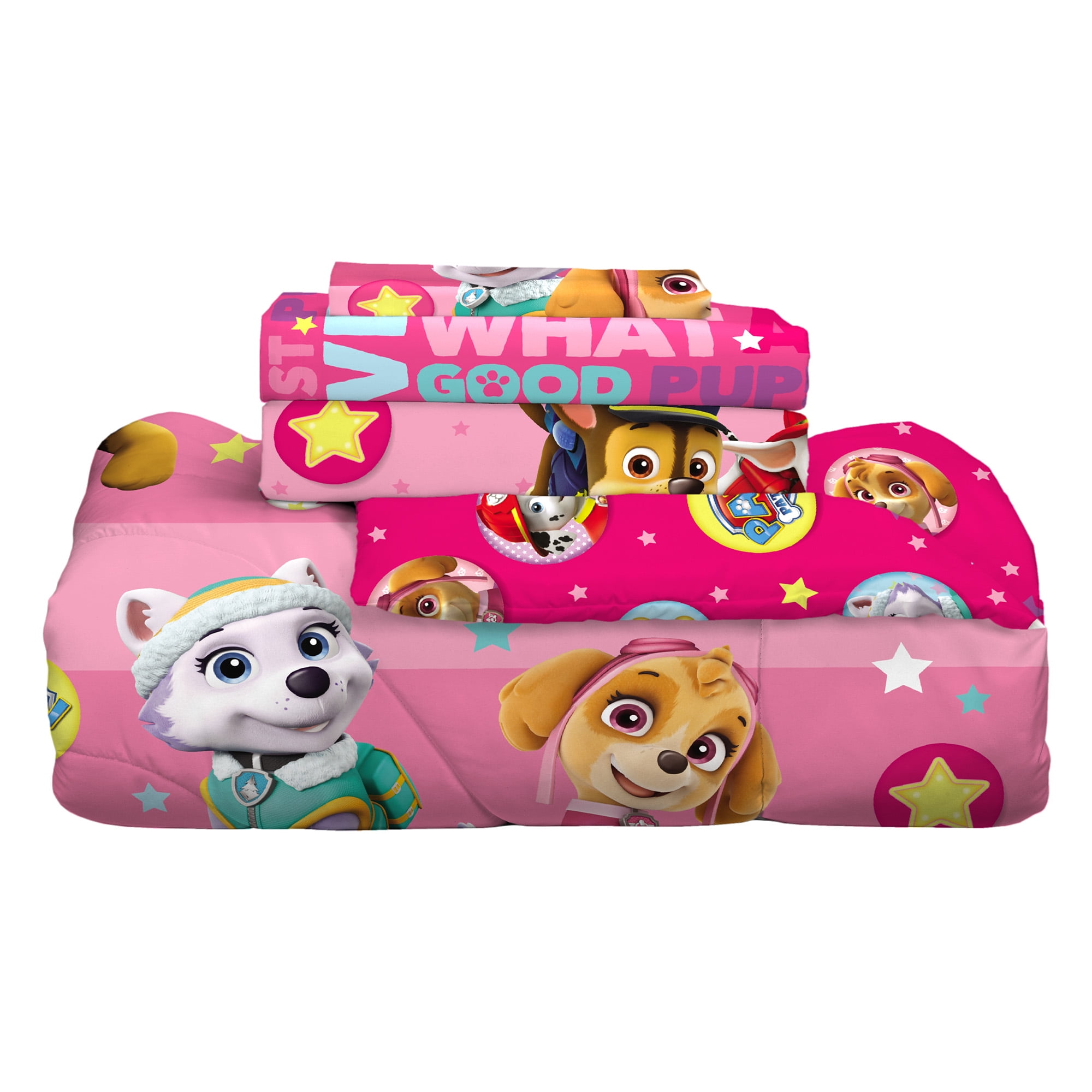 - ★ PAW PATROL PINK DESIGN: Rescue dogs unite on this cute and colorful Paw Patrol bed-in-a-bag bundle set from Nickelodeon. They’ll love cuddling up with their favorite pups Marshall, Chase, Skye, and Everest from the hit Nickelodeon series.