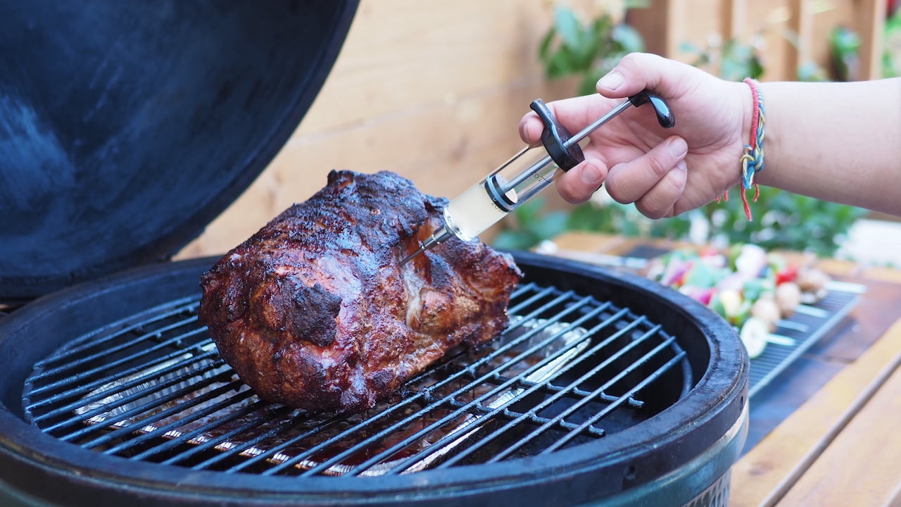 - Grill Accessories Kit Includes: Everyday grilling essentials all in one 14pc set; 1x 16" spatula, 1x 16" tongs, 1x marinade injector, 1x 16" bbq fork, 6x 16" skewers, 1x salt & pepper shaker, 1x heat resistant glove and 1x roll-up apron that makes it easy to transport or keep your essential tools nearby.