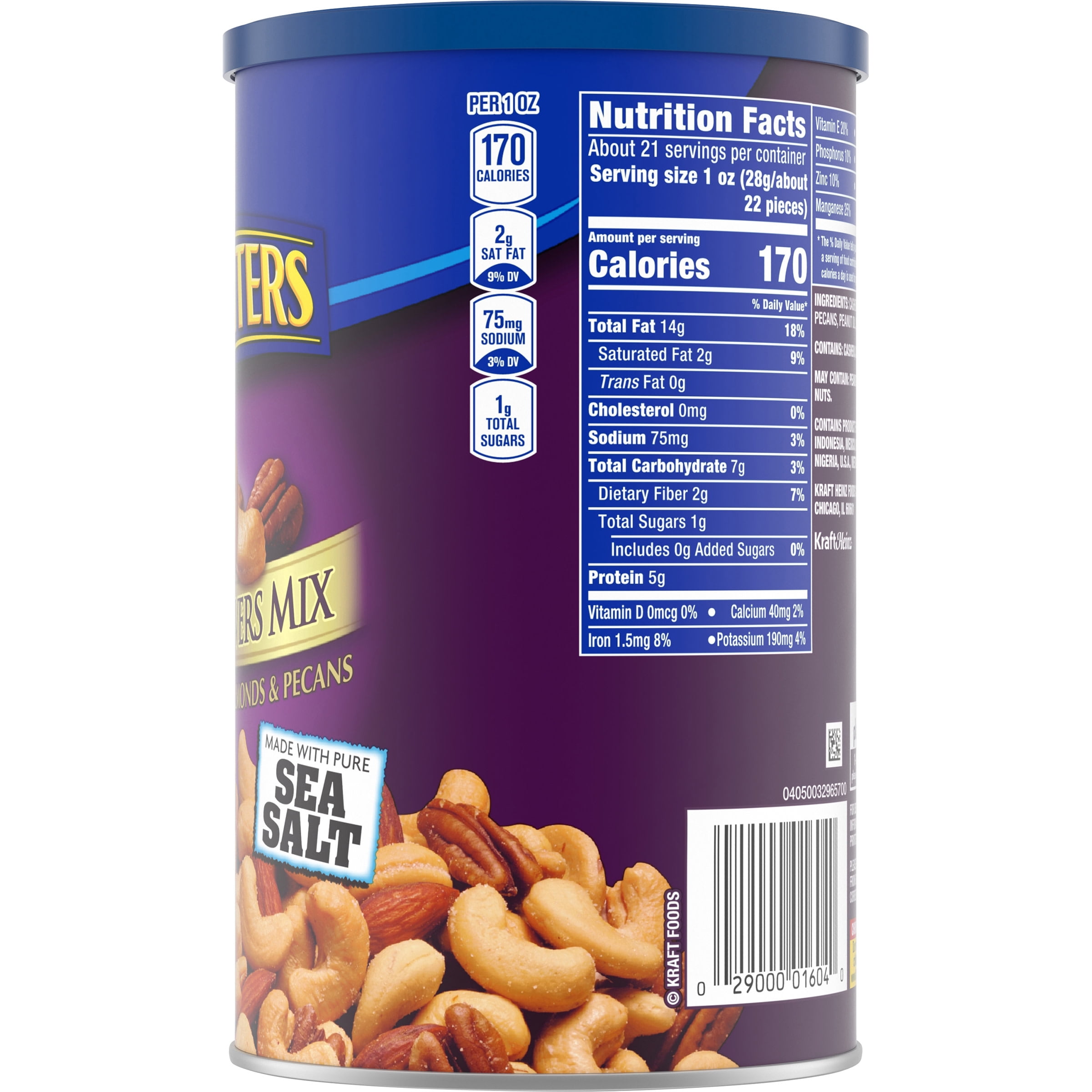 Planters Cashew Lovers Mix – Calling all cashew lovers! If you’re a fan of this smooth and tasty nut but prefer to have a variety of other snacks to crunch on at the same time, this is the mix for you. Planters combines jumbo cashews with almonds and pecans, seasoned to perfection with pure sea salt, bringing you the best snack combination you could ask for. The Perfect Mix of Crunch to Munch – Planters uses only its premium quality nuts to prepare this perfect mix of jumbo cashews, almonds and pecans, packed with flavor and nutrient dense. . Add this nut mix to your salads or grab a handful to snack on alone. The 21 oz. can contains no cholesterol.