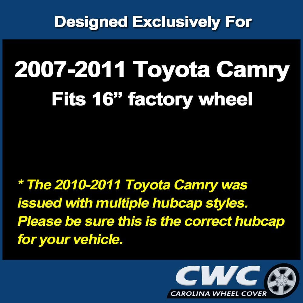 Brand New replica hubcap replacement for Toyota 16-Inch factory steel wheels. Fits 2007, 2008, 2009, 2010, 2011 Camry. Silver-painted. This is a copy of a factory original but will fit almost any Car, Truck, or Van with 16-Inch standard steel wheels. They will look great on your vehicle for years to come. The only difference between our Replica hubcaps and the originals is the logo. Use this hubcap to replace just one factory original or a whole set of four.