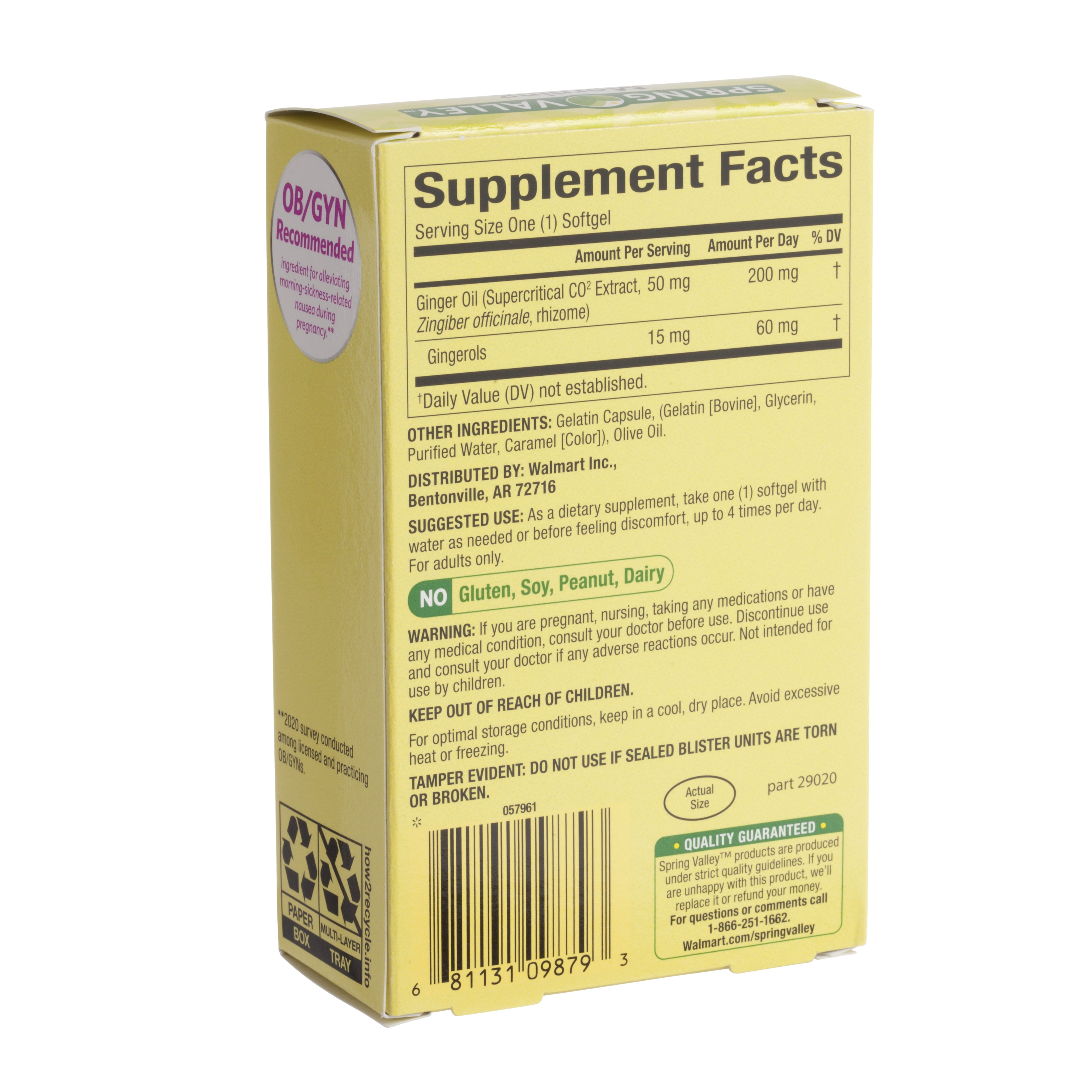 Spring Valley Morning Sickness Relief*, Dietary Supplement, 30 Softgels