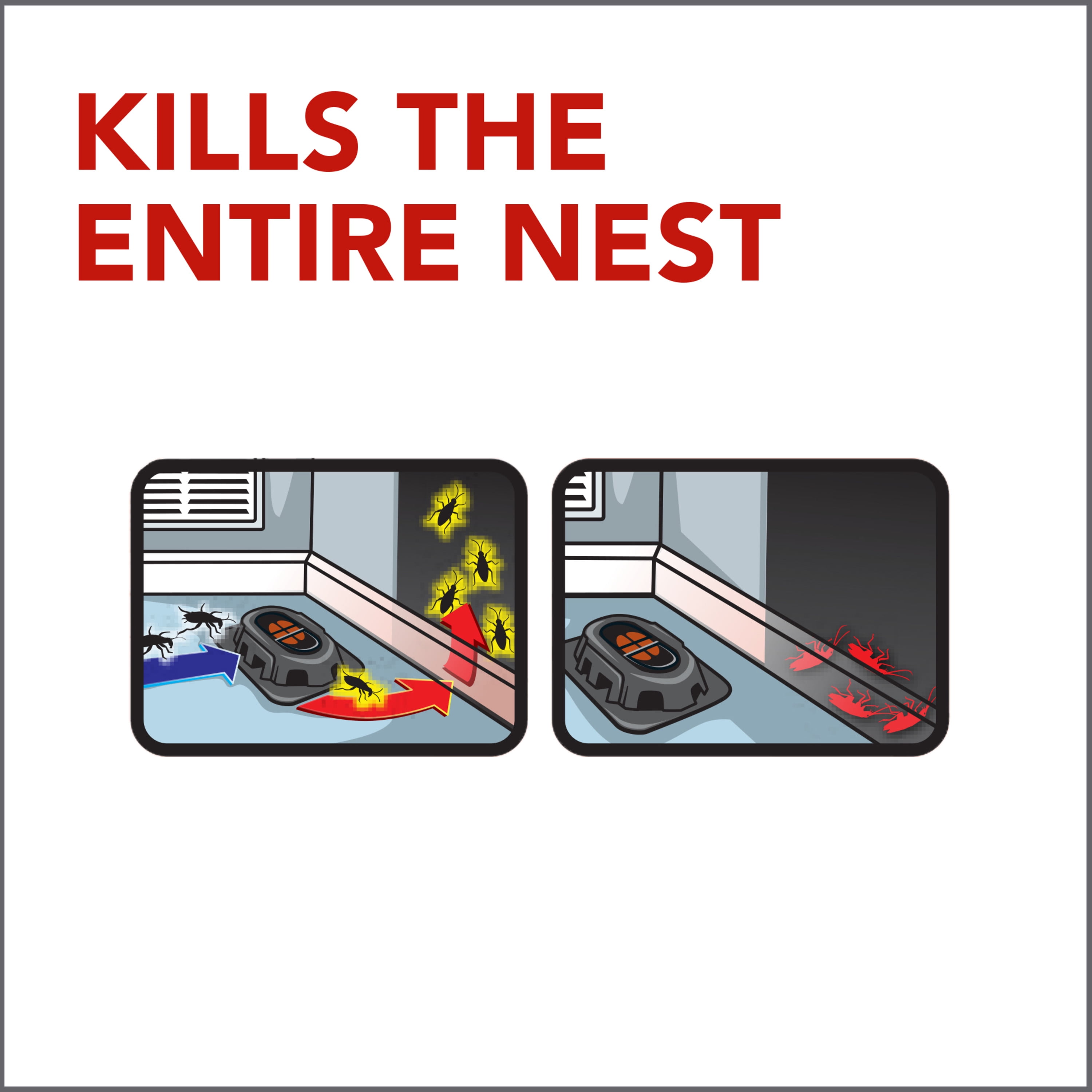 - After roaches feed on the bait, they return to the nest and transfer the bait to the others, thereby killing the entire nest
