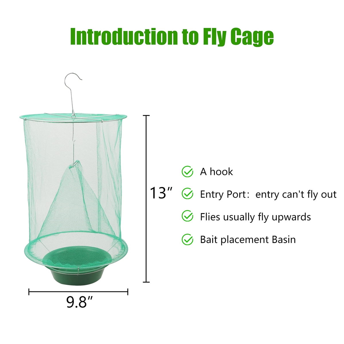 How It Works: In spring and autumn, hanging it in sunny places, and in summer, hanging it outside where it is not exposed to sunshine. Uses bait to trap the flies into the cage and starve them.