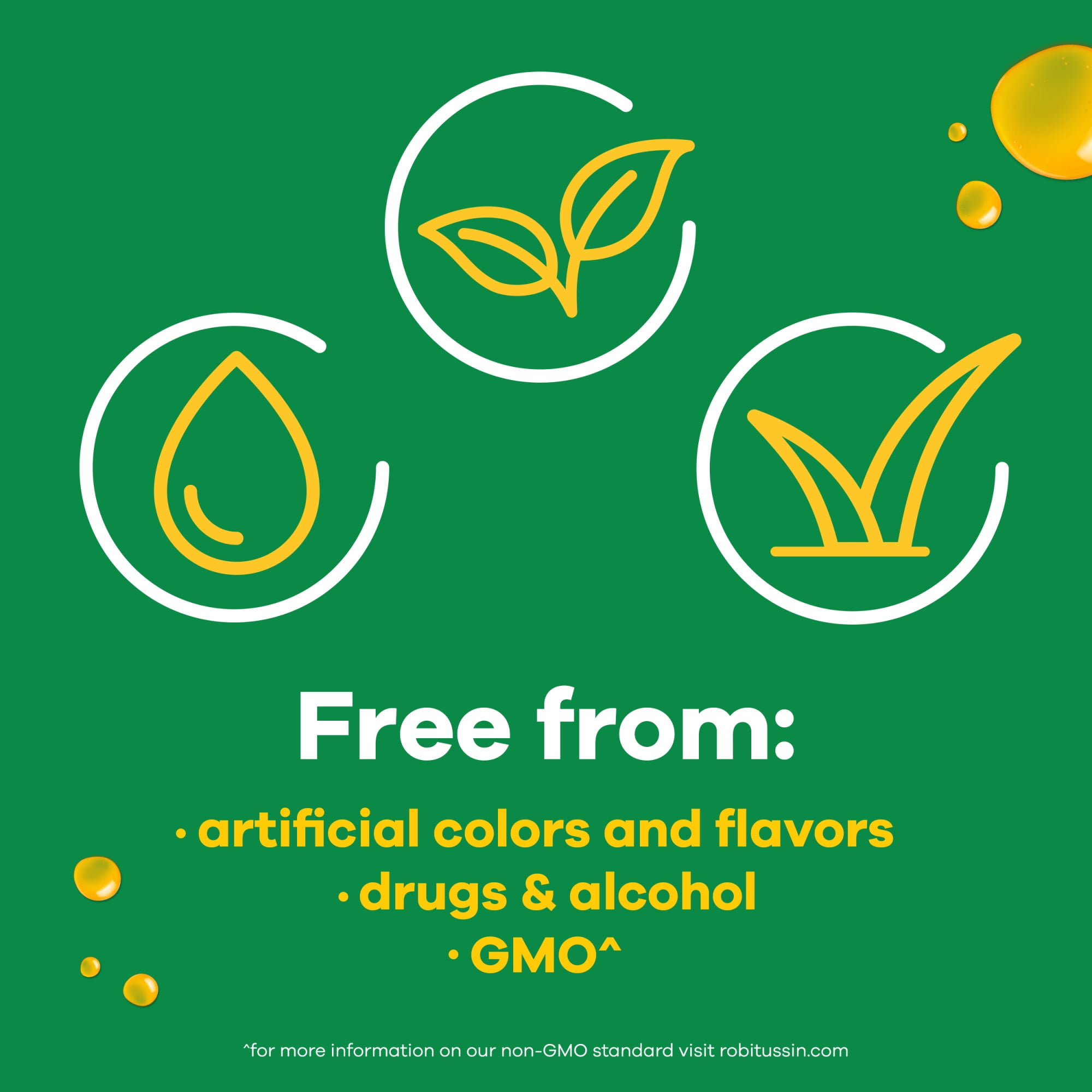 - Robitussin Naturals syrup is free from artificial colors, flavors, and preservatives