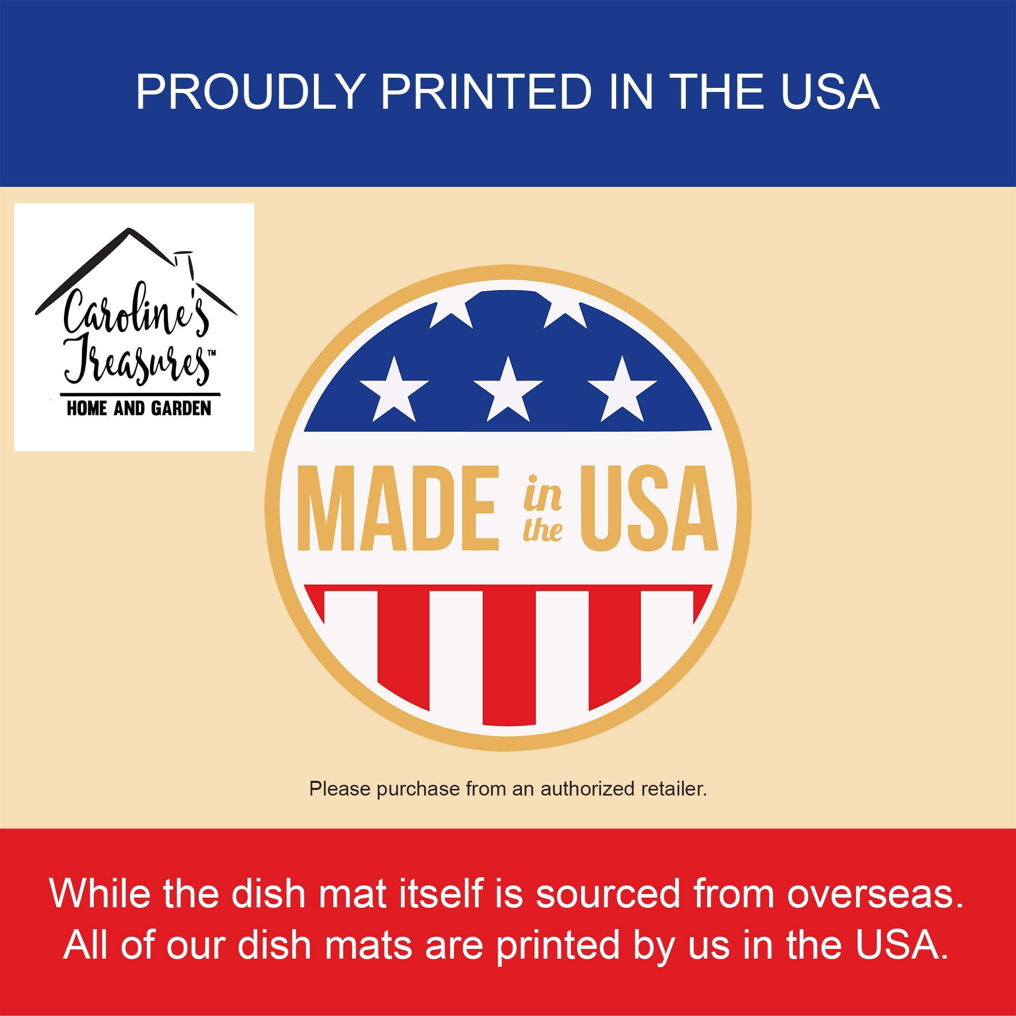 Tired of setting dishes on an old towel? Well fret no more when you set your eyes on this decorative dish mat! It measures 14 inches x 21 inches and features a water-absorbent polyester face, polyurethane foam insert, polyester mesh lining and a binding edge finish. Add a touch of flair and functionality to the kitchen by ordering yours today!Add a touch of flair and functionality to the kitchen
