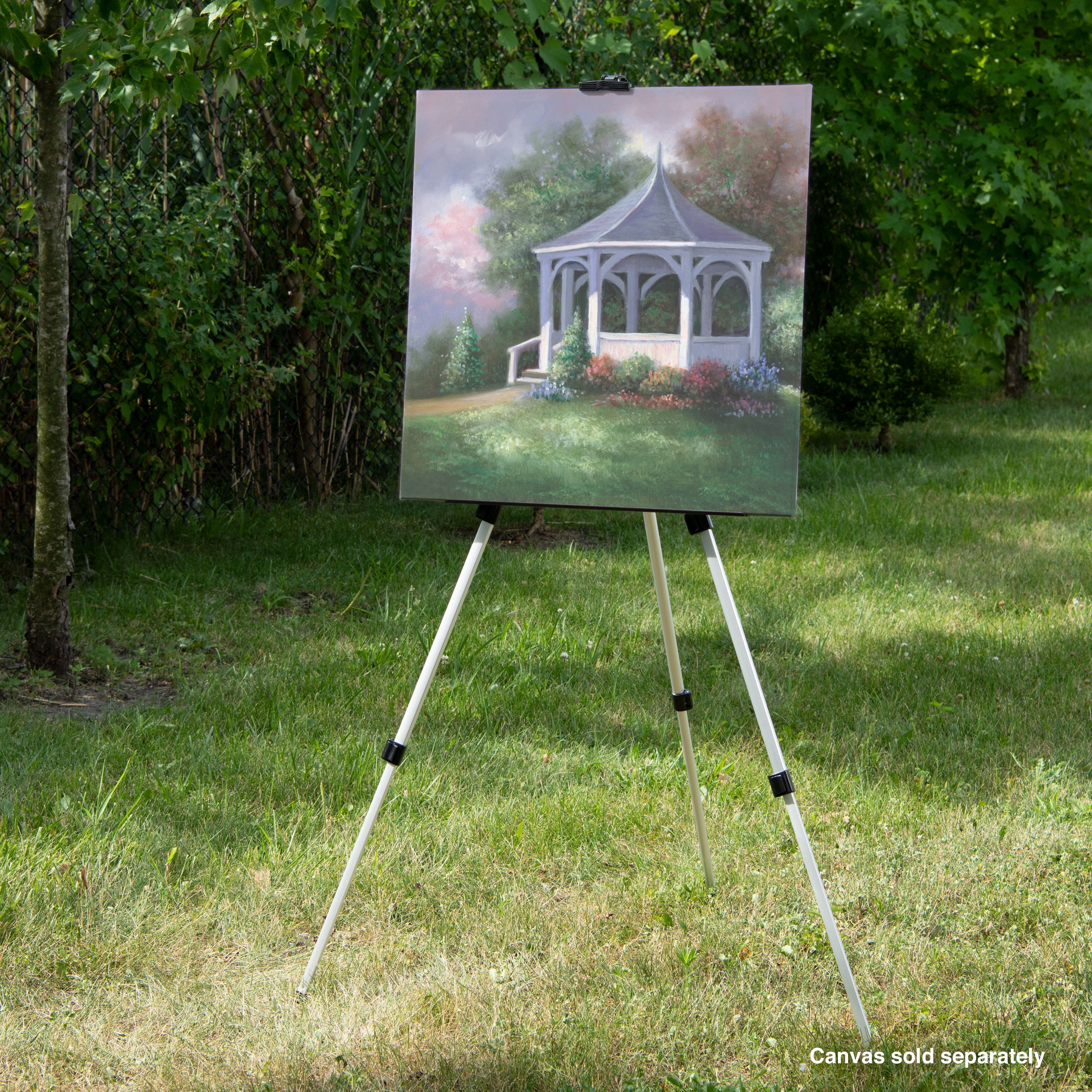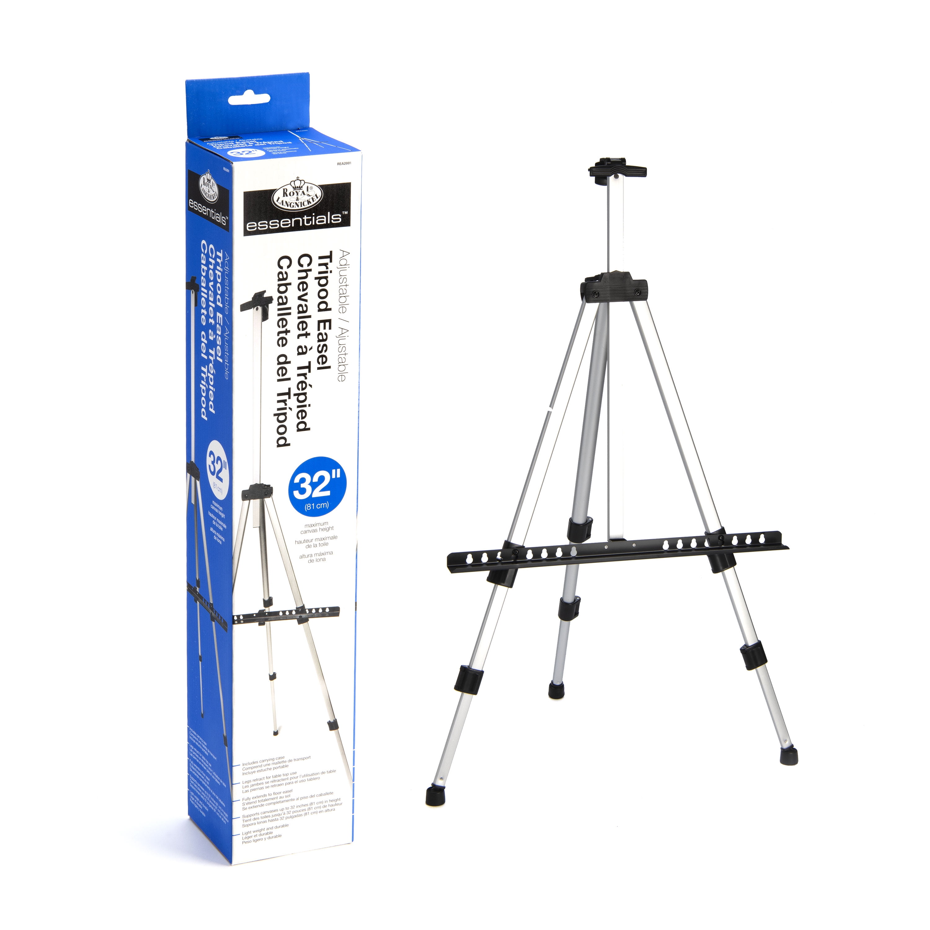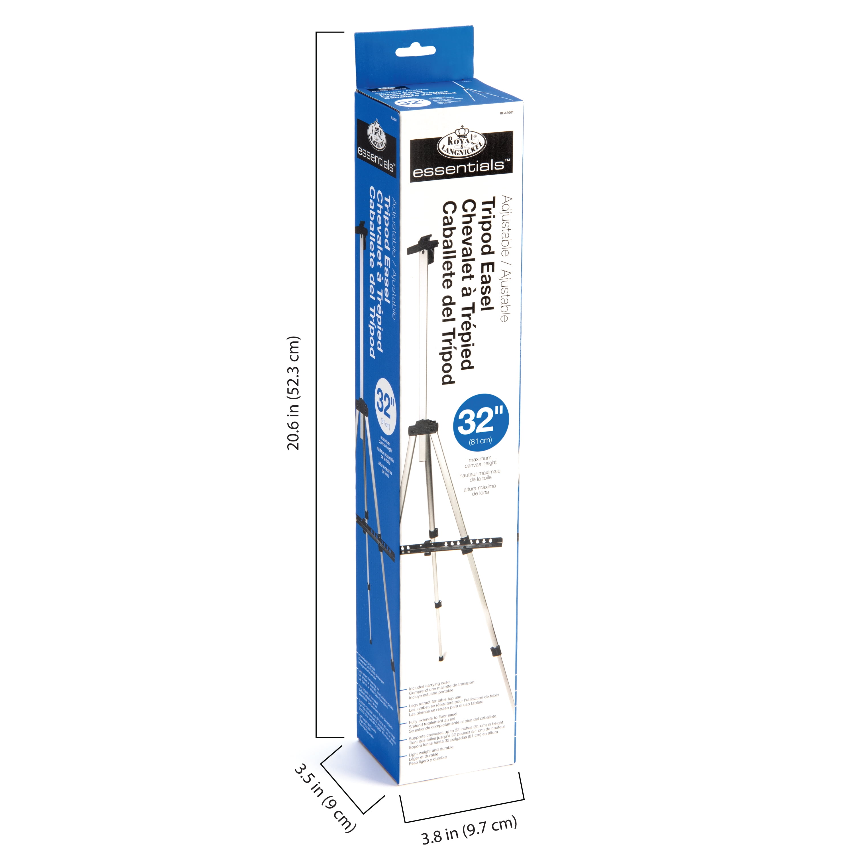 Royal & Langnickel Essentials Aluminum Painting Easel. Essential for any artist! Measures at a max height of 72in (1828.8 mm) and can hold a canvas with a max height of 32in (812.8 mm). Aluminum Artist Easel is lightweight and comes with a zippered carrying case for easy travel. Constructed of high quality materials and collapsible for compact storage. Versatile enough to work on small artist pieces or larger masterpieces. Perfect for advanced or beginner artists.