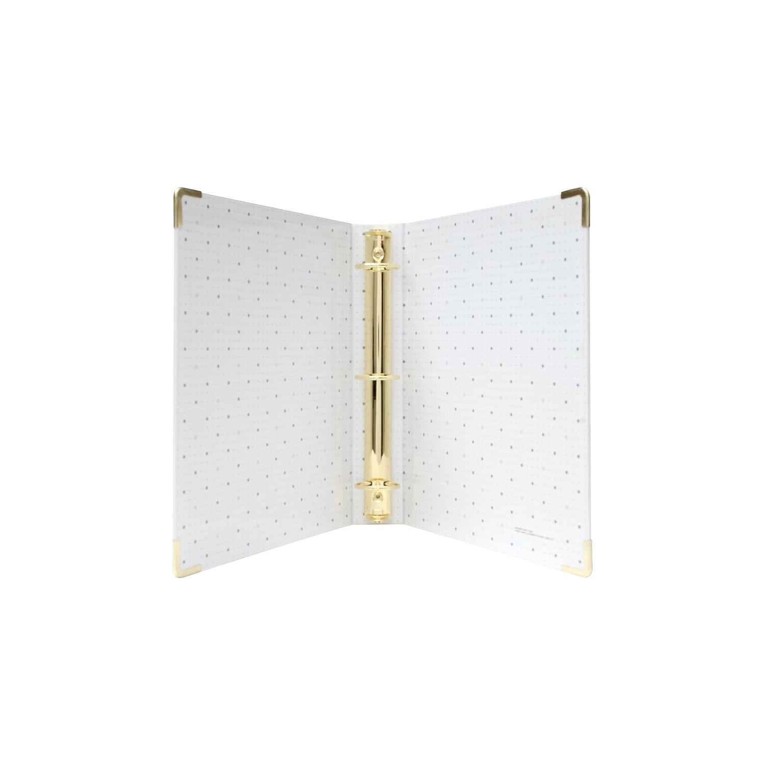 - Dew-color ring binder with standard durability protects and organizes working documents. Features gold-tone hardware, a dry-erase interior, metal-reinforced corners, and a full-wrap subtle-shimmer textured book cloth cover.