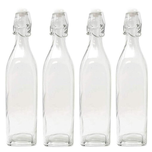 - AIT TIGHT CAP & LEAK PROOF:Narrow neck of clear glass bottle aid in easy pouring which therefore avoid spills.Stopper is made of plastic and has a wire swing cap features an airtight rubber lid with wire to keep it in place.