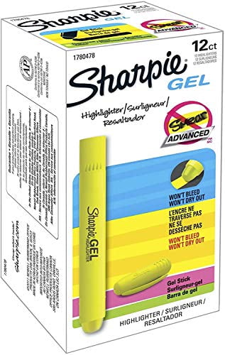 Sharpie 1780478 Accent Gel Highlighter, Fluorescent Yellow, 12-Pack. New gel stick technology provides strong smear protection across pen and marker inks and ink jet printouts. Won’t bleed through paper and works on all paper surfaces including glossy and thin papers, magazines and Bibles. Won’t dry out if left uncapped. Writes as long as a traditional highlighter. Contains 12 pens. 8.1 inches long by 0.93 inches wide by 5.37 inches high. 0.029 pounds. Imported.Sharpie 1780478 Accent Gel Highlighter, Fluorescent Yellow, 12-Pack