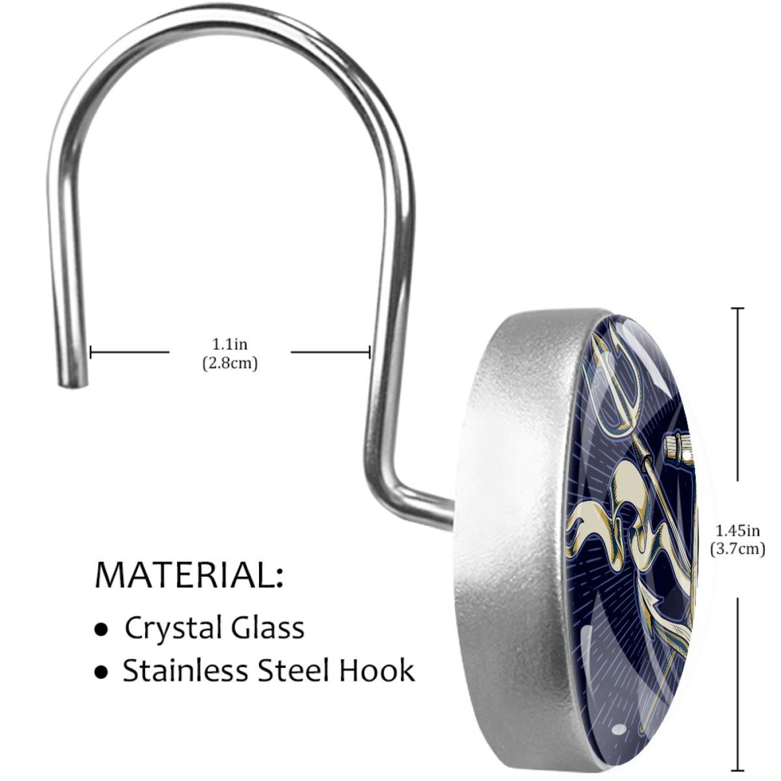 - QUALITY MATERIAL: The hooks are made of stainless steel and crystal glass, which are strong enough to support shower curtains and other heavy objects