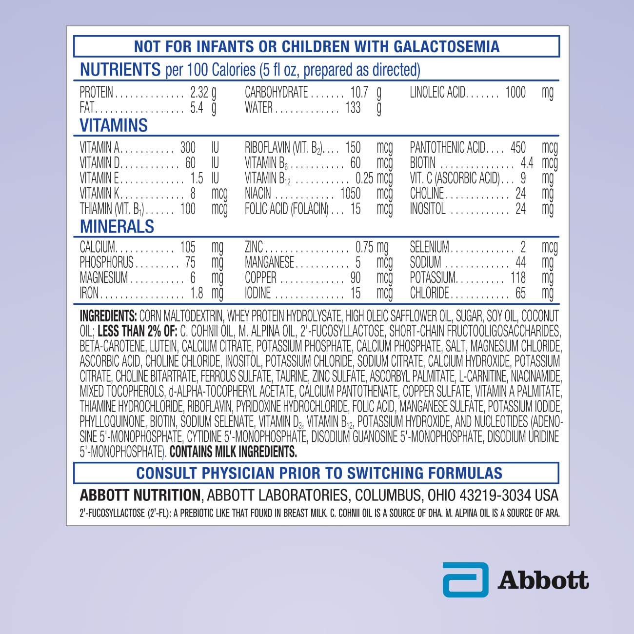 Similac Pro-Total Comfort is the first gentle formula with partially hydrolyzed protein and 2’-FL HMO, an immune-nourishing prebiotic like that found in breast milk. Parents reported† a significant reduction in fussiness, gassiness, and crying after just 1 day, and the improvement was maintained. Our exclusive blend of DHA, Lutein, and Vitamin E is important for helping support baby’s brain and eye development. You can trust Similac, #1 brand fed in hospitals.‡. †After switching to Similac Pro-Total Comfort ‡Total US infant formula, all outlets as of 3/31/2018, Nielsen data