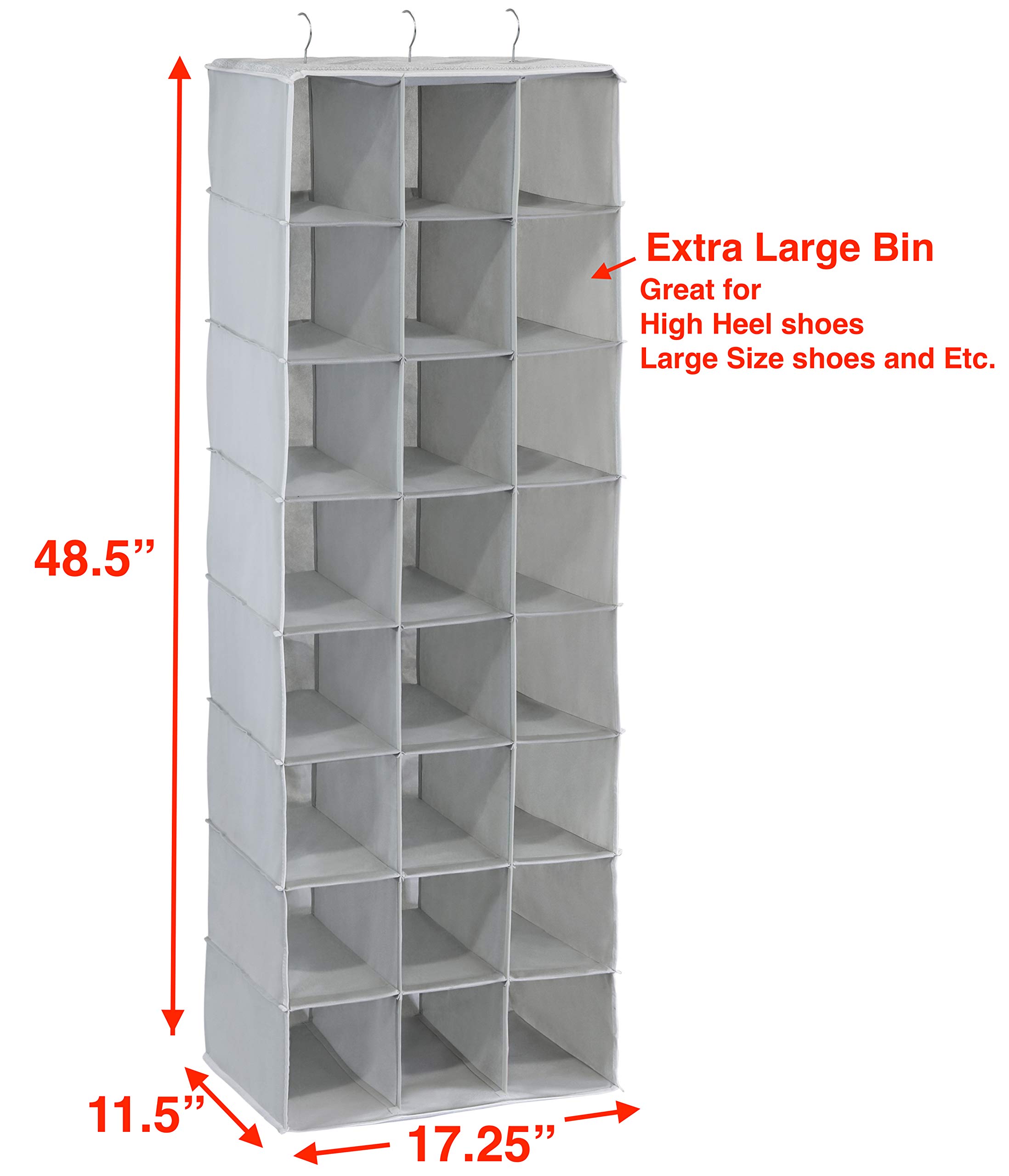 SimpleHouseware 24 Section Hanging Shoe Shelves Closet Organizer, Gray