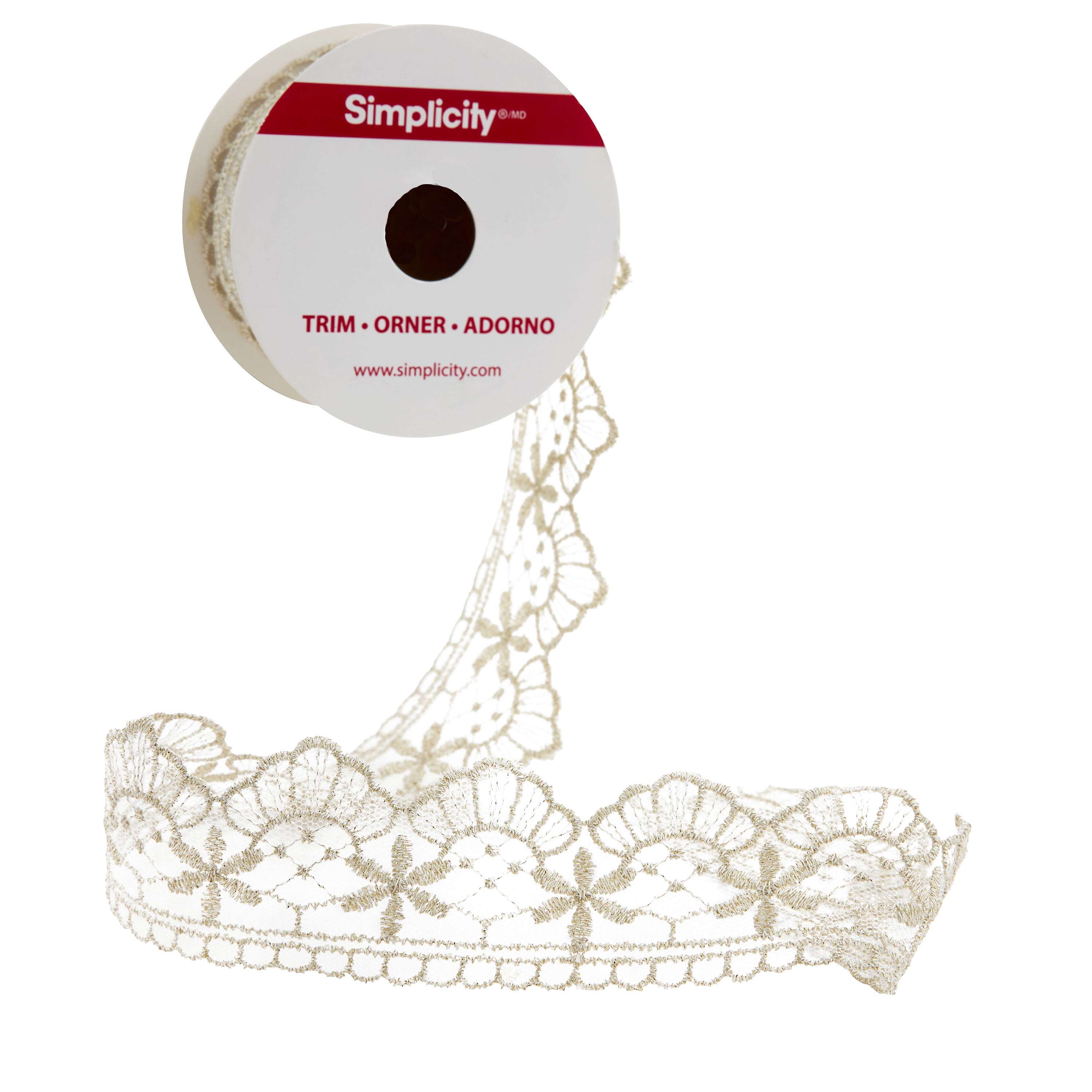 Simplicity lace trim steeped in tradition, can make any project feel special. Laces can be hand or machine sewn. Simplicity Laces comes in a variety of fibers, patterns, and colors from venice heavily embroidered rich and elegant in design to cutout edged and ruffled eyelets and cluny lace which has a very vintage or handmade look. Simplicity speciality trims are available in a wide variety of styles, colors, and widths. Pick the perfect trim for crafting, decorating, sewing, and more. Choose from a wide selection of lace, ric rac, pom poms, belting, cording, braids, fringes, velvets, feather, and rhinestones that will complement any of your sewing and crafting projects.