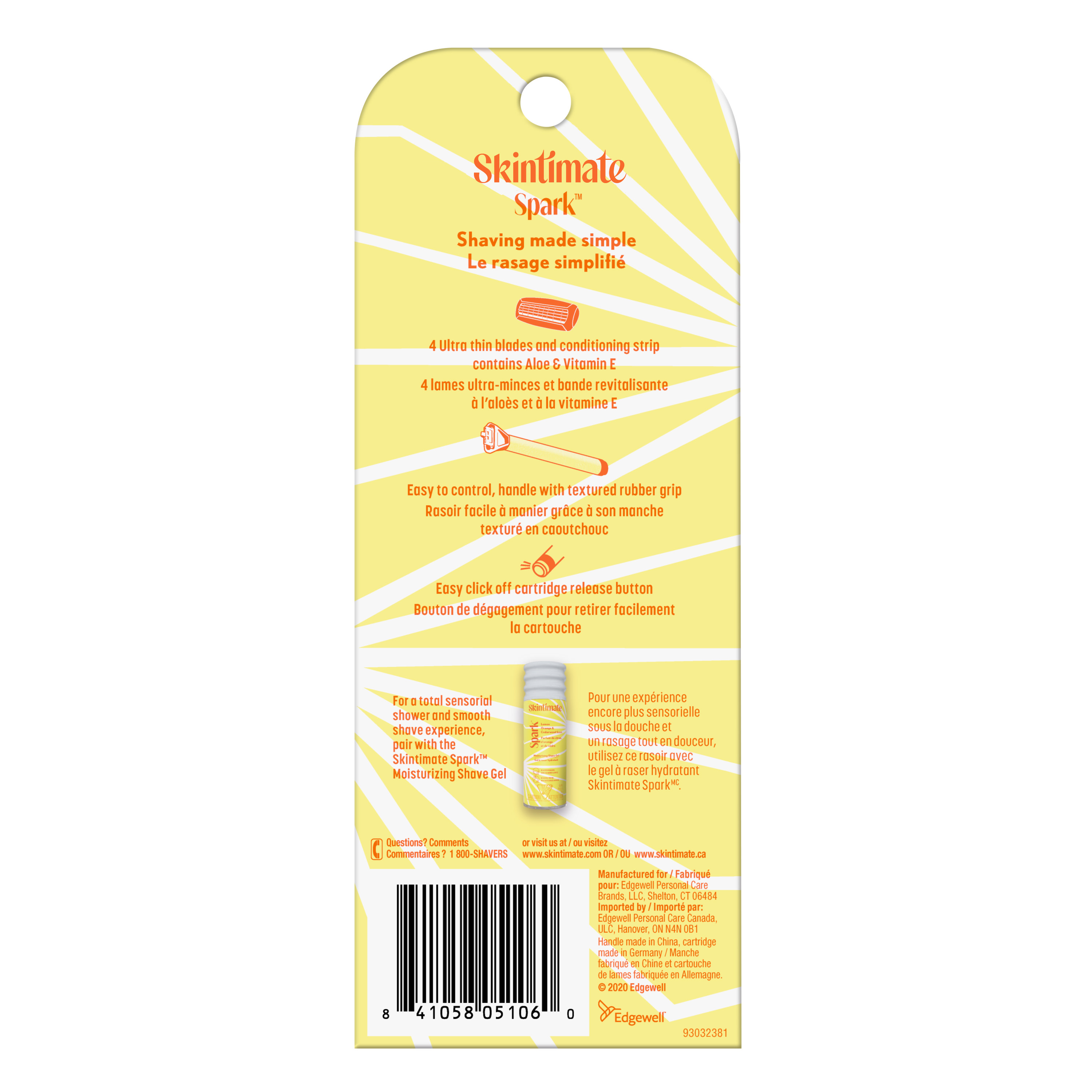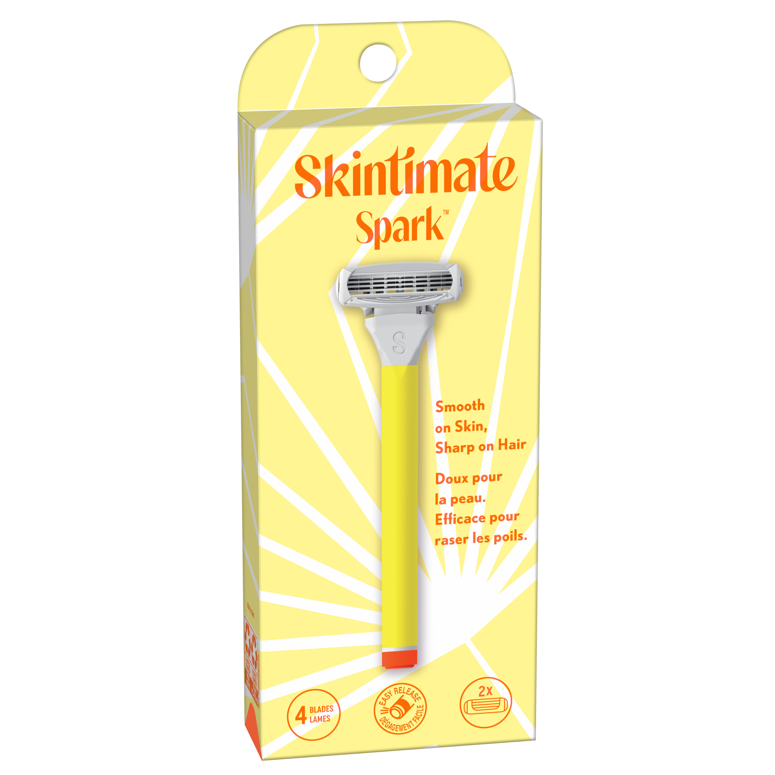 - Skintimate Spark razors for women feature 4 ultra-thin razor blades that are sharp on hair yet smooth on skin so you can get close to wherever you shave.