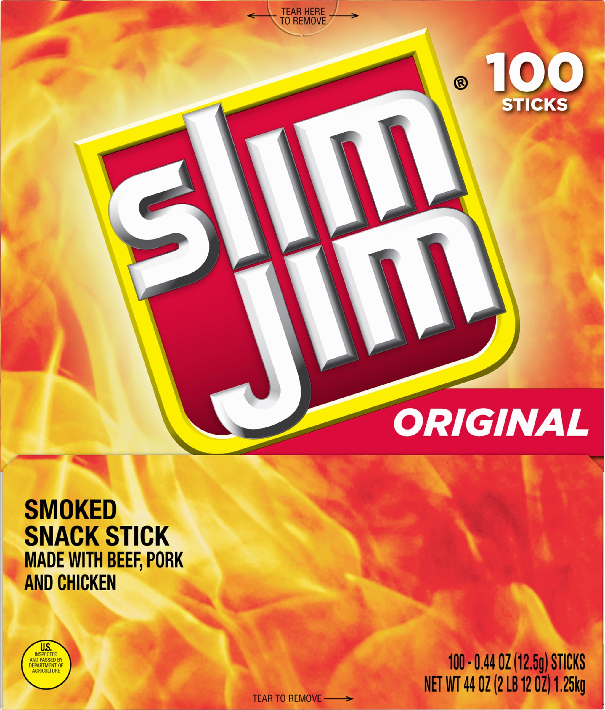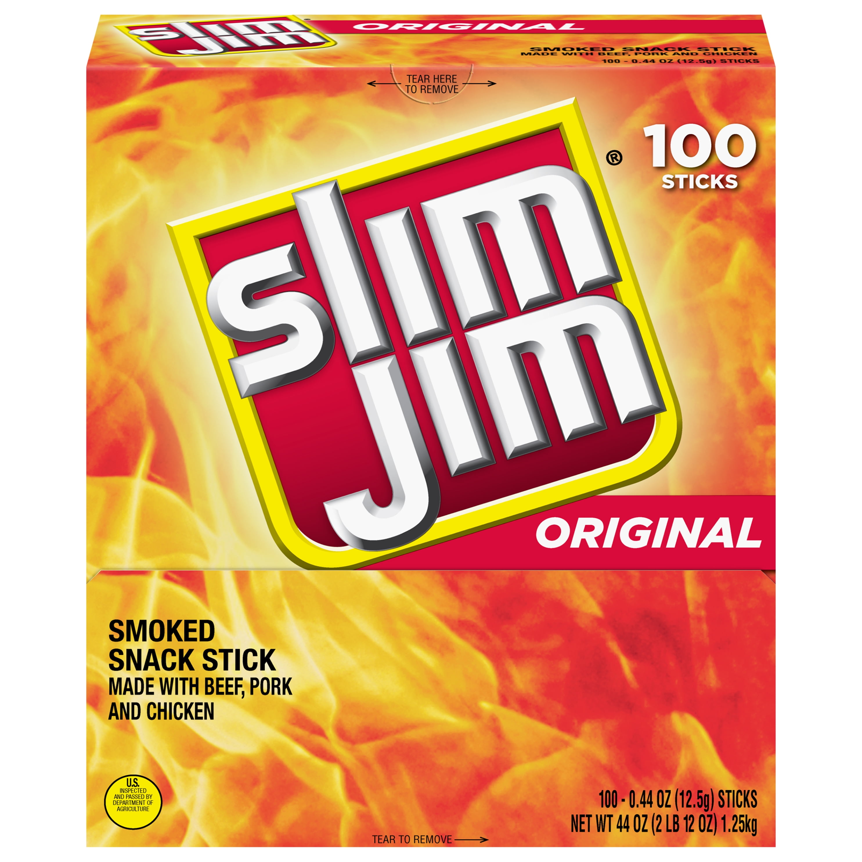 - Contains one 100-count box of individually wrapped, 0.28-ounce Slim Jim Original Flavor Smoked Meat Snack Sticks