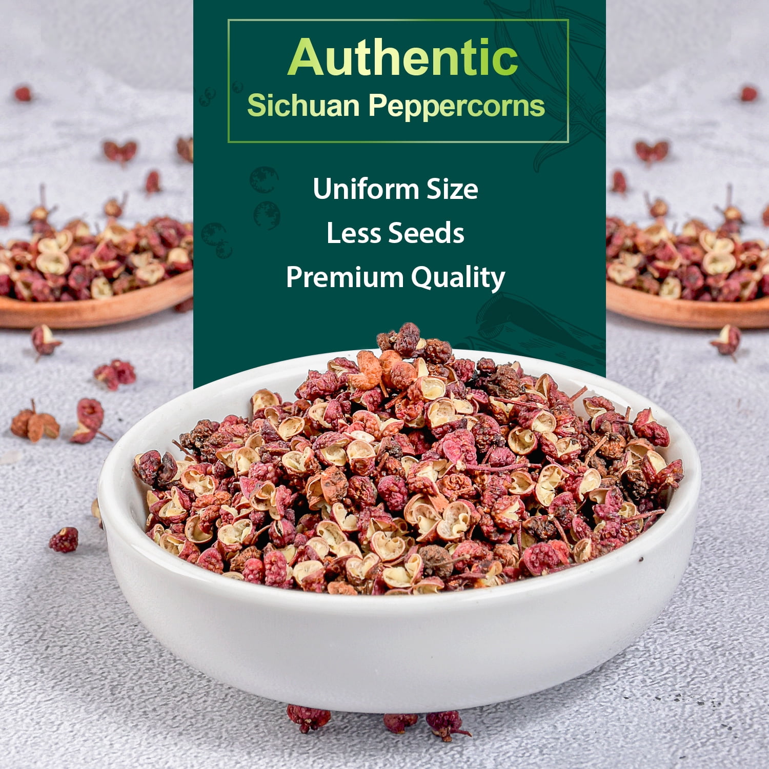 Sichuan Peppercorns is an essential ingredient in Sichuan cooking. It gives spicy Sichuan dishes their unique mouth-numbing quality. These Szechuan Peppercorns are reddish-pink berries of the prickly-ash tree, with small, dark seeds and a bright, citrusy aroma. You can use this peppercorns to season your meats, braised dishes, salads and many more.