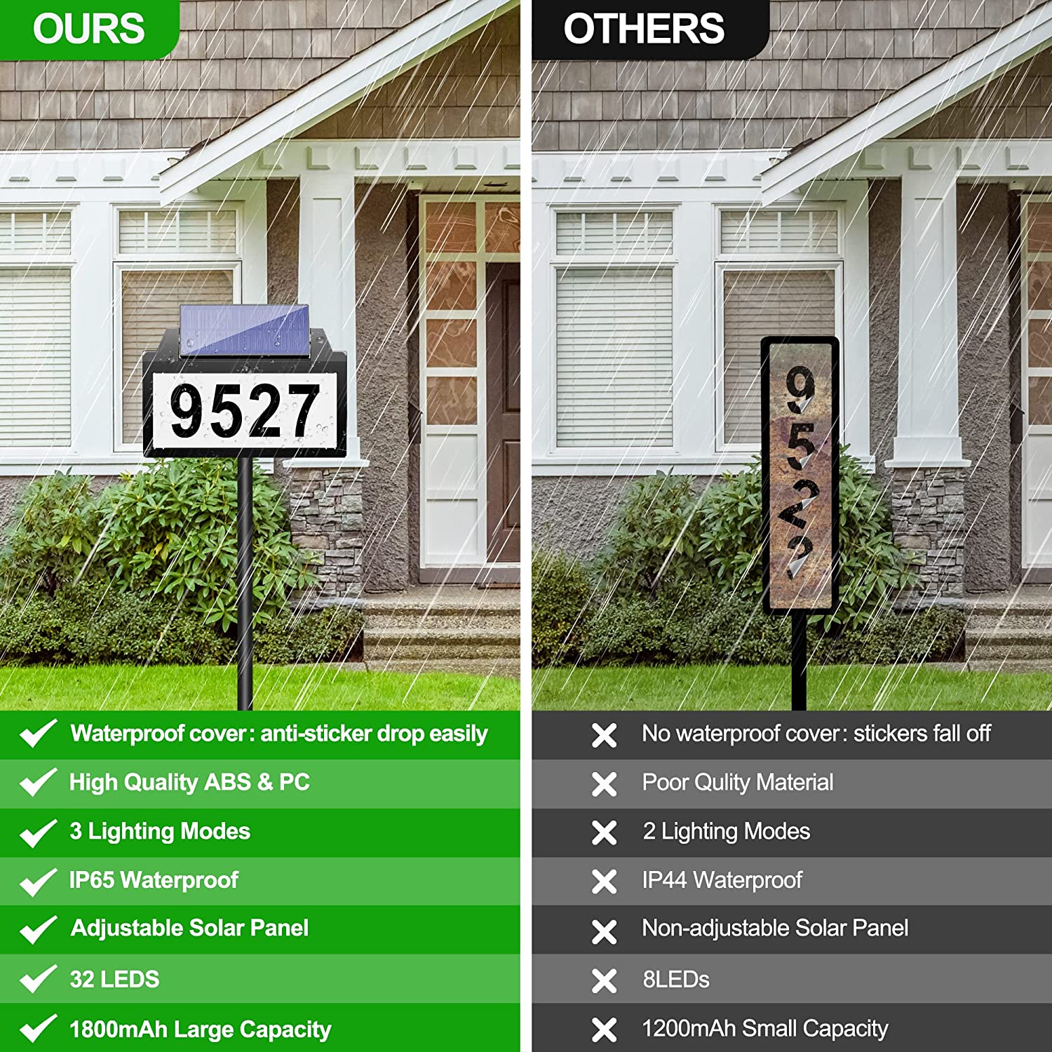High quality and anti-sticker drop: The solar lighting address sign is made of high-quality ABS material, durable and waterproof. We sincerely hope that customers who use these address numbers for houses can make your friends,couriers or guests find their destination easily,so we adopted the waterproof cover to strengthen the details to prevent the stickers from falling off on rainy days, hot days, and so on. The house sign and sticker are waterproof and will work as usual in inclement weather