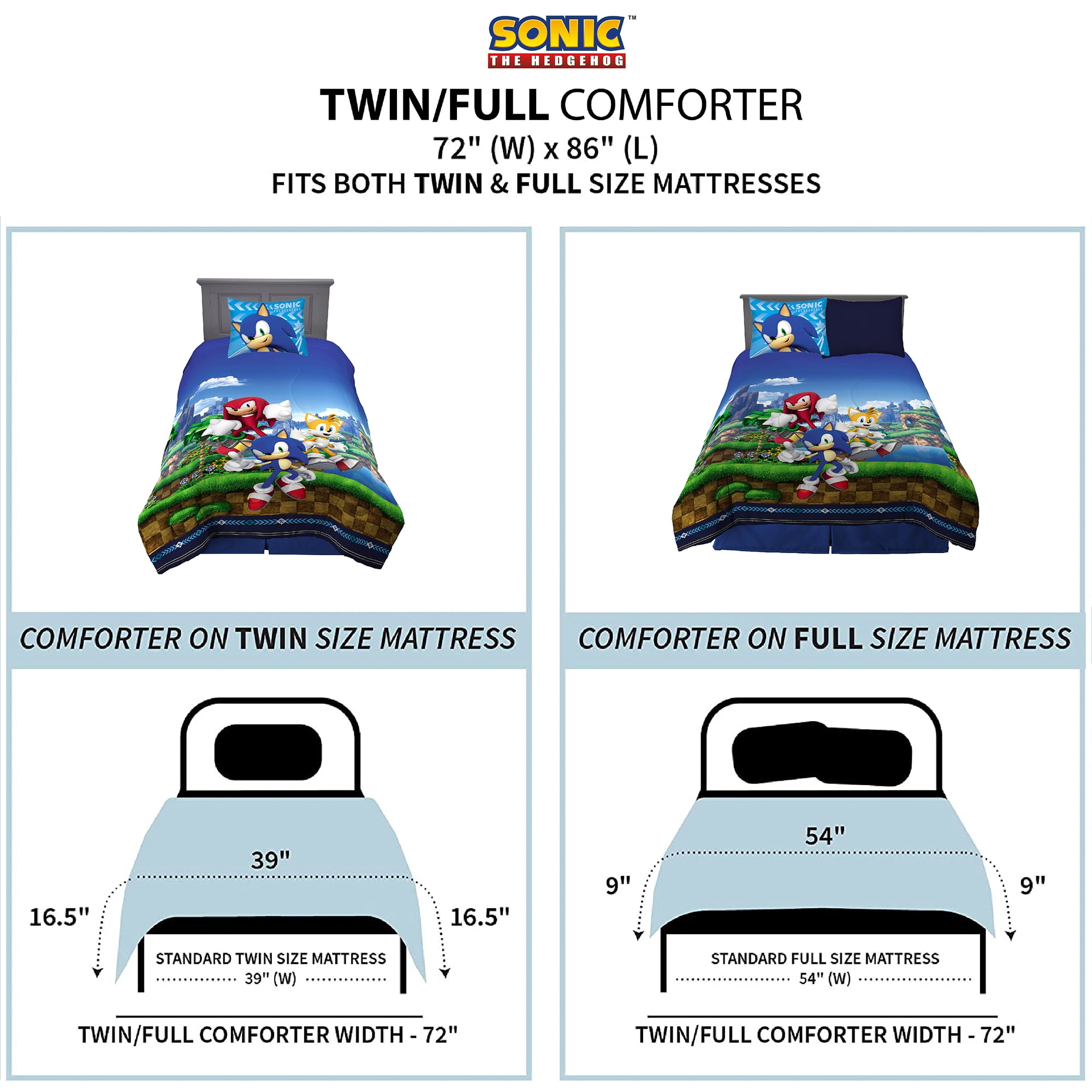 - ★ TWO DESIGNS IN ONE COMFORTER: A reversible comforter lets kids easily switch up the style of their bedroom, featuring large character imagery of Sonic on one side, and a different print on the reverse.
