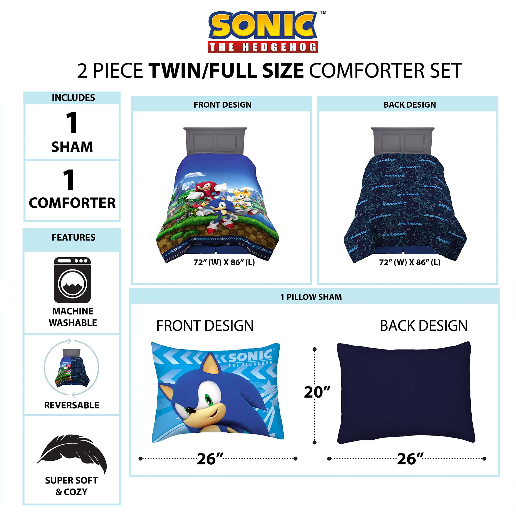 - ★ SHAM ADDS EXTRA DESIGN FUN: The included sham adds an extra, fun touch to the bed, fits a standard size pillow, and features a vivid and speedy Sonic.