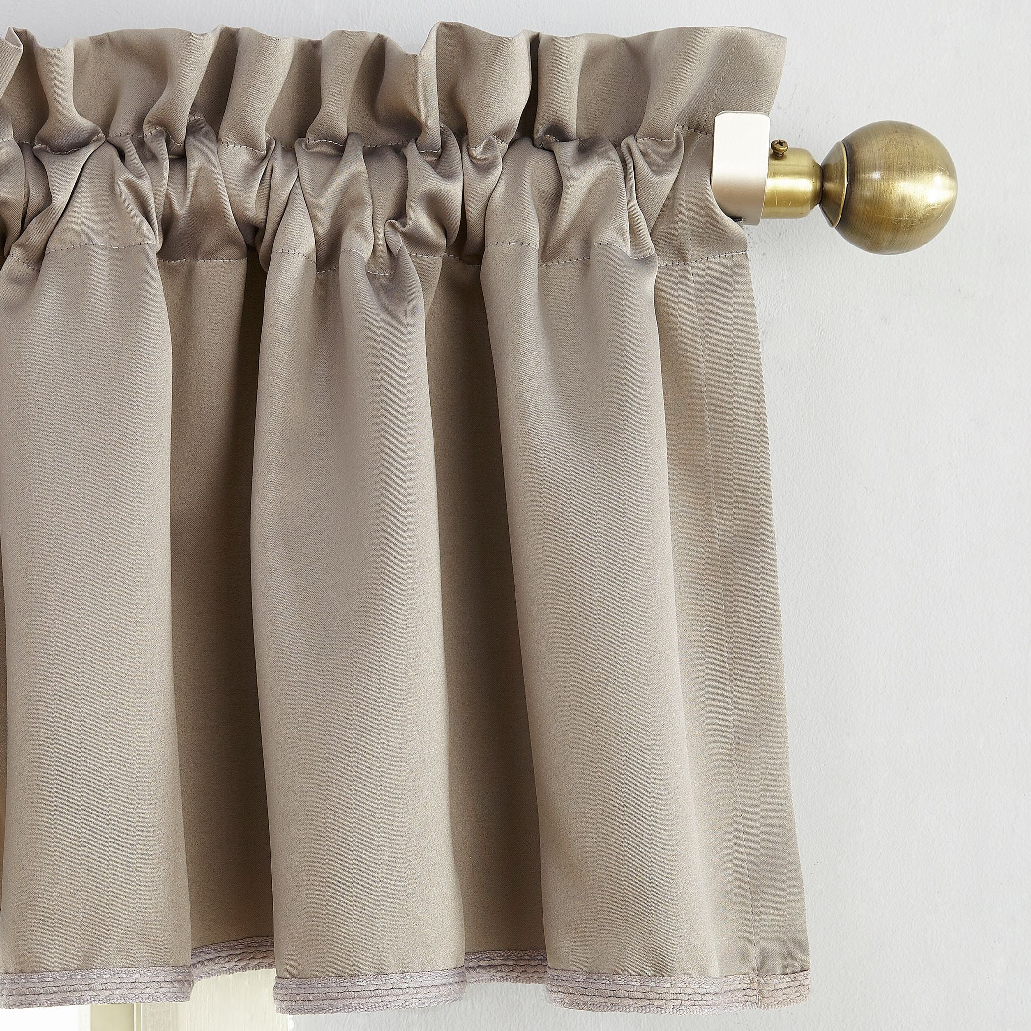 The Sun Zero Kylee Curtain Valance in stone delicately adorns the top of any window in your home. Pair with Sun Zero curtains or hang alone for maximum light exposure. Equipped with a rod pocket that fits curtain rods up to 1. 5" in diameter. Machine wash cold on gentle cycle. Use non-chlorine bleach when needed. Tumble dry on low heat, using a cool iron as needed. Sold as individual valances measuring 54" width by 18" length. Coordinating curtain panels are sold separately. Measure carefully before selecting your desired size and quantity. Machine wash cold on gentle cycle. Use non-chlorine bleach when needed. Tumble dry on low heat, using a cool iron as needed.
