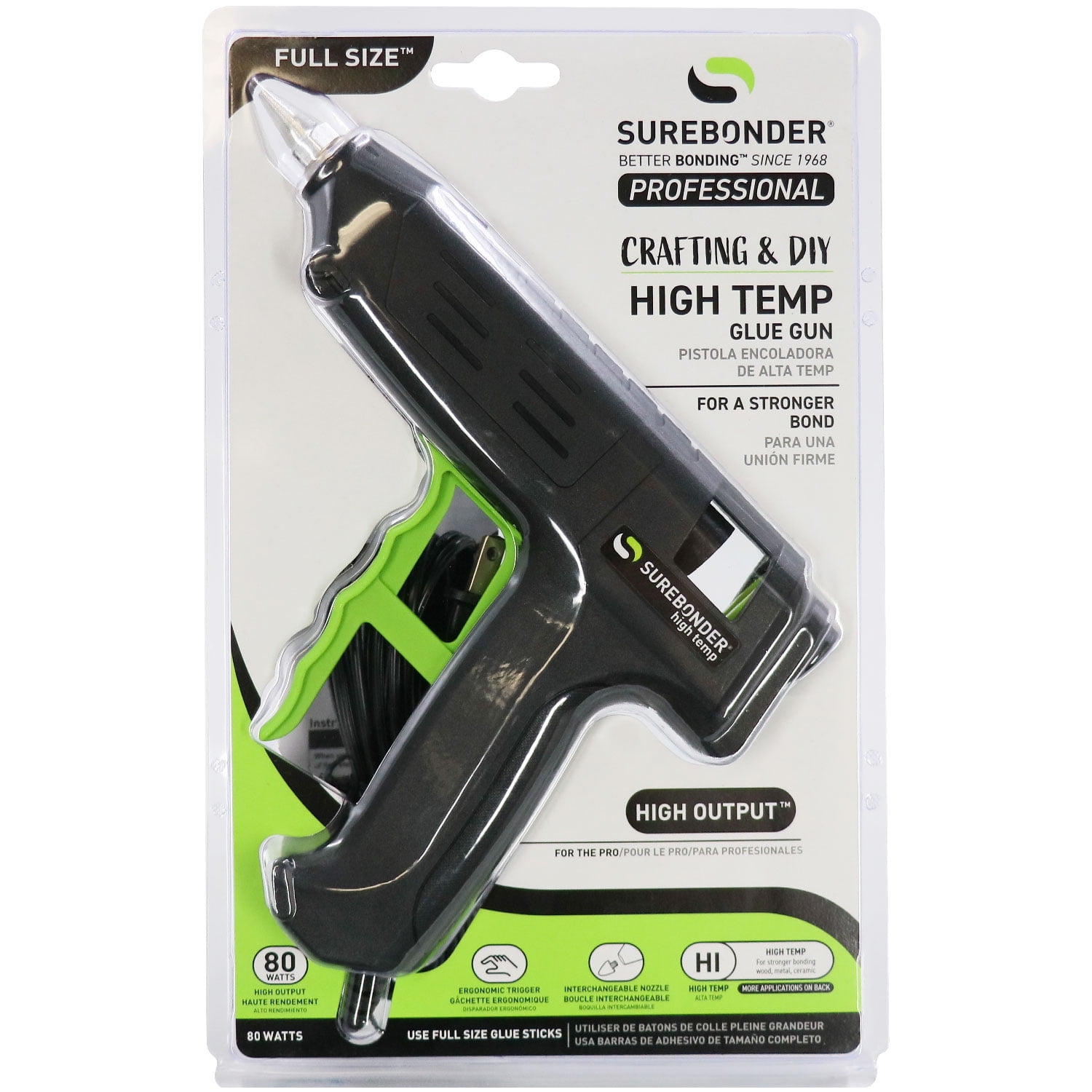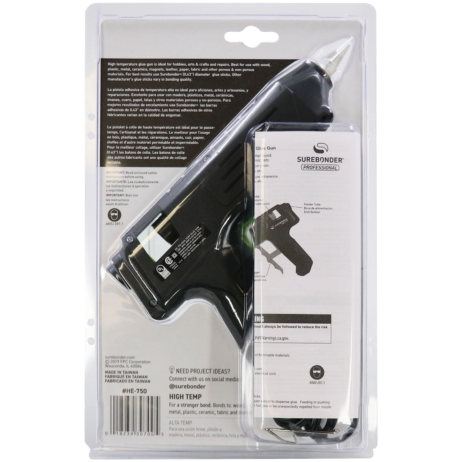 Upgrade your kit with the Surebonder Full Size Professional High-Temperature Glue Gun. Suitable for light duty industrial and packaging applications, it can also be used at home for personal projects. The Surebonder glue gun comes with a removable wire stand and an ergonomic long trigger that requires less effort. This craft glue gun is easy to manipulate and can be used on surfaces such as glass, metal and leather.
