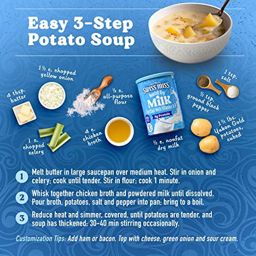 – contains one 45.43-ounce canister of swiss miss nonfat dry milk with vitamins a and d