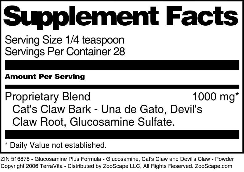 Glucosamine Plus Formula – Glucosamine, Cat’s Claw and Devil’s Claw – Powder