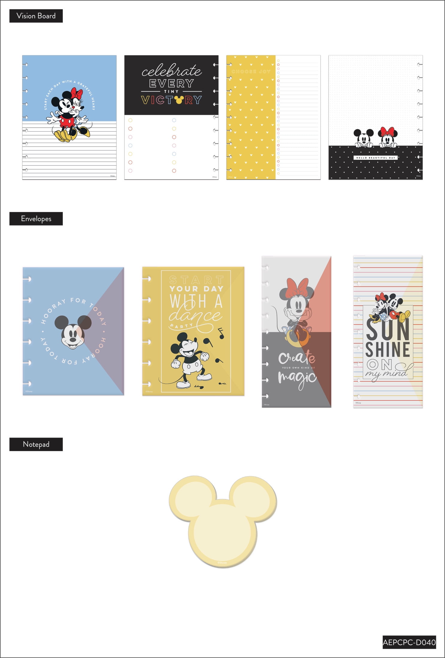 Join in on all the Disney fun with this NEW collection from The Happy Planner that’s filled with timeless artwork featuring Mickey Mouse and Minnie Mouse. Plan for all the adventures ahead with this collection! This Classic planner companion features artwork with Mickey Mouse and Minnie Mouse. It includes vision boards, 4 plastic envelopes, and a notepad for all your memos. Add these accessories into your classic size Happy Planner for a touch of Disney nostalgia.