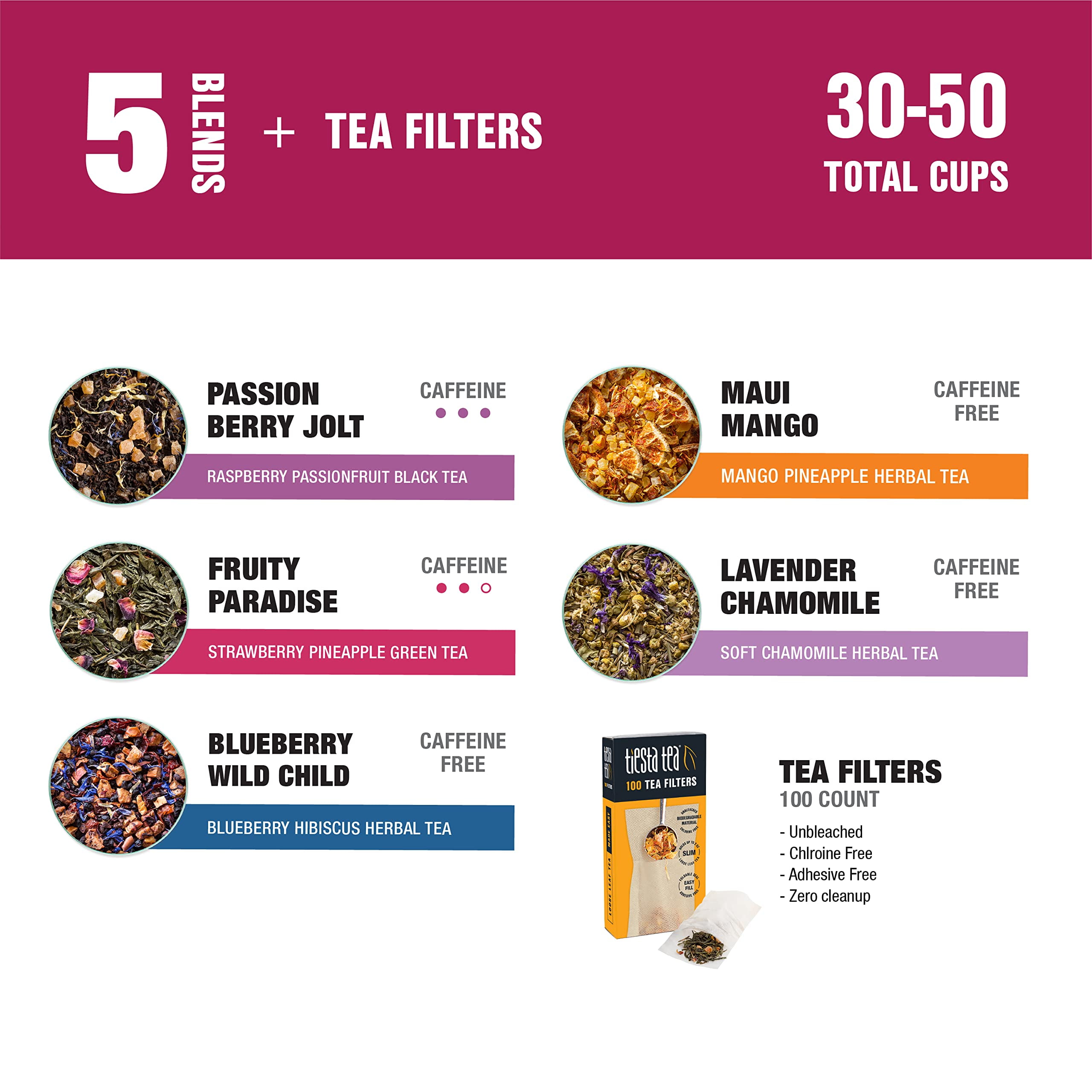 Tiesta Tea Loose Leaf Tea Starter Kit, High to No Caffeine, Hot & Iced Tea, Tea Variety Pack with Green Tea, Black Tea, Herbal Tea, Tea Filter, 7 Pack: