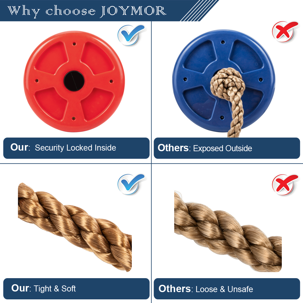 2. Material: Polyethylene Disc, Polyethylene Rope, Iron Hook, Polyester Swing Belt