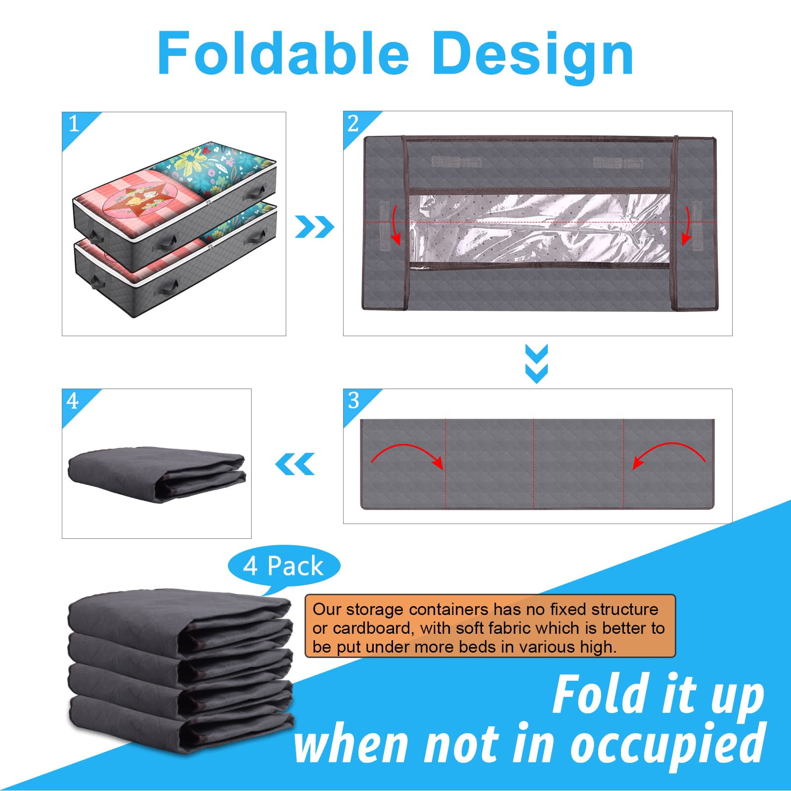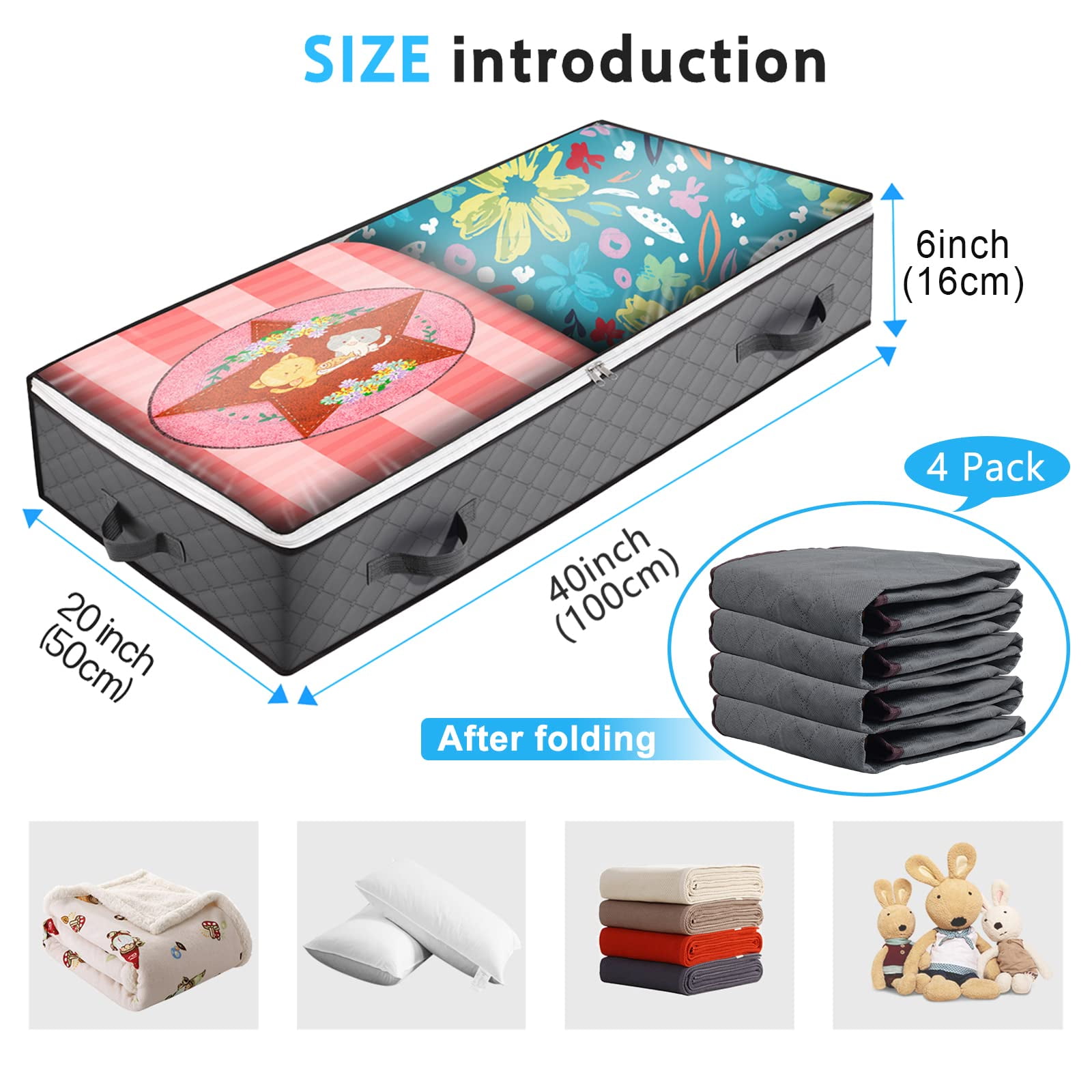 - Storage for Multipurposes- This set of 4 under bed storage bag is perfect for placed in your closet, wardrobe or under the bed. Our storage containers has no fixed structure, with soft fabric which is better to be put under more beds in various high.