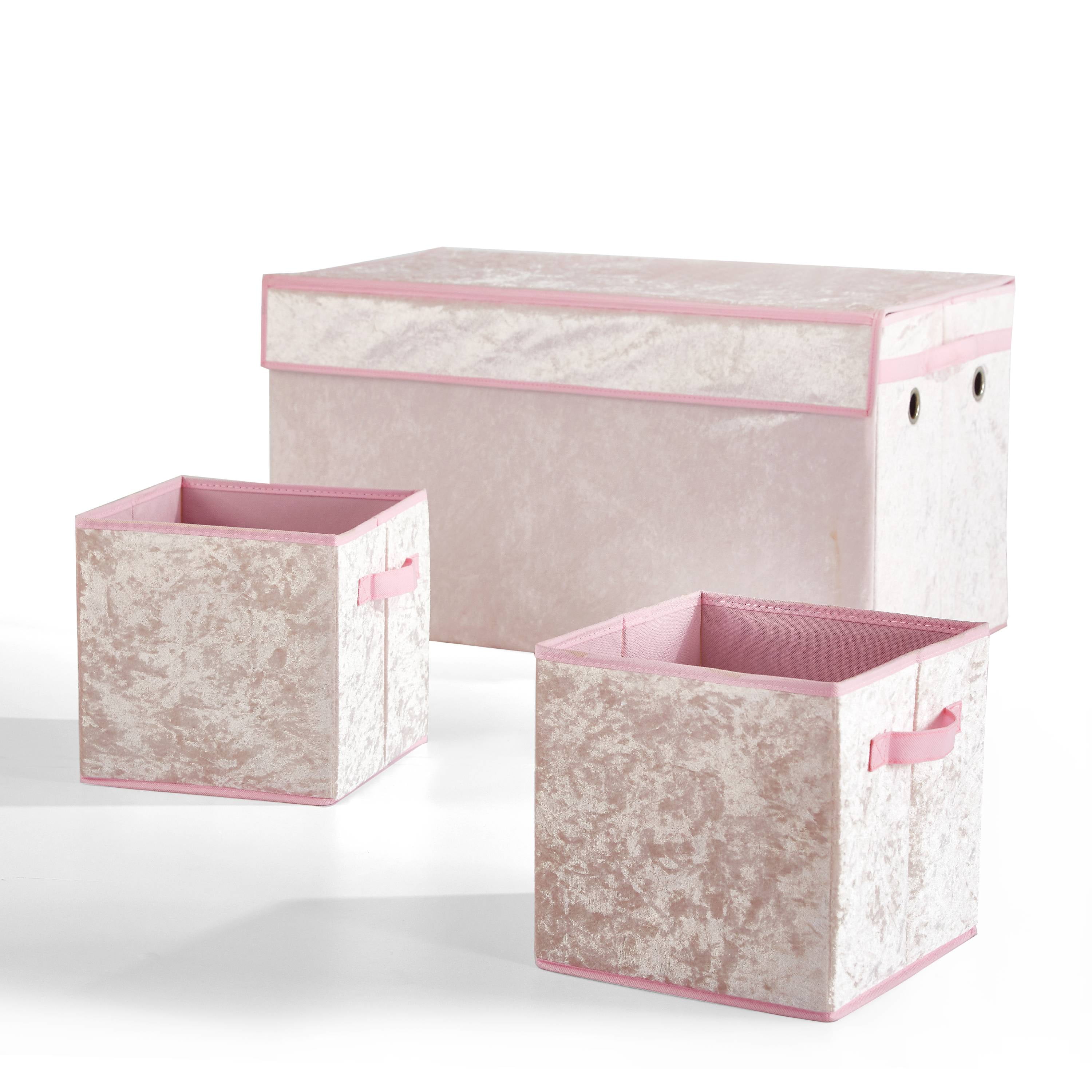 The Urban Shop Collapsible Velvet Pack of 2 Storage Cube and Soft Collapsible Storage toy trunk will help you create an organized home.This set is ideal for collecting everything from clothes to books and more. The Collapsible Velvet Storage Cubes and trunk offer a suitable way to update your current décor while maintaining clutter. Each item has built in handles so you can easily carry from room to room. When not in use, each item can be folded down and stored away.