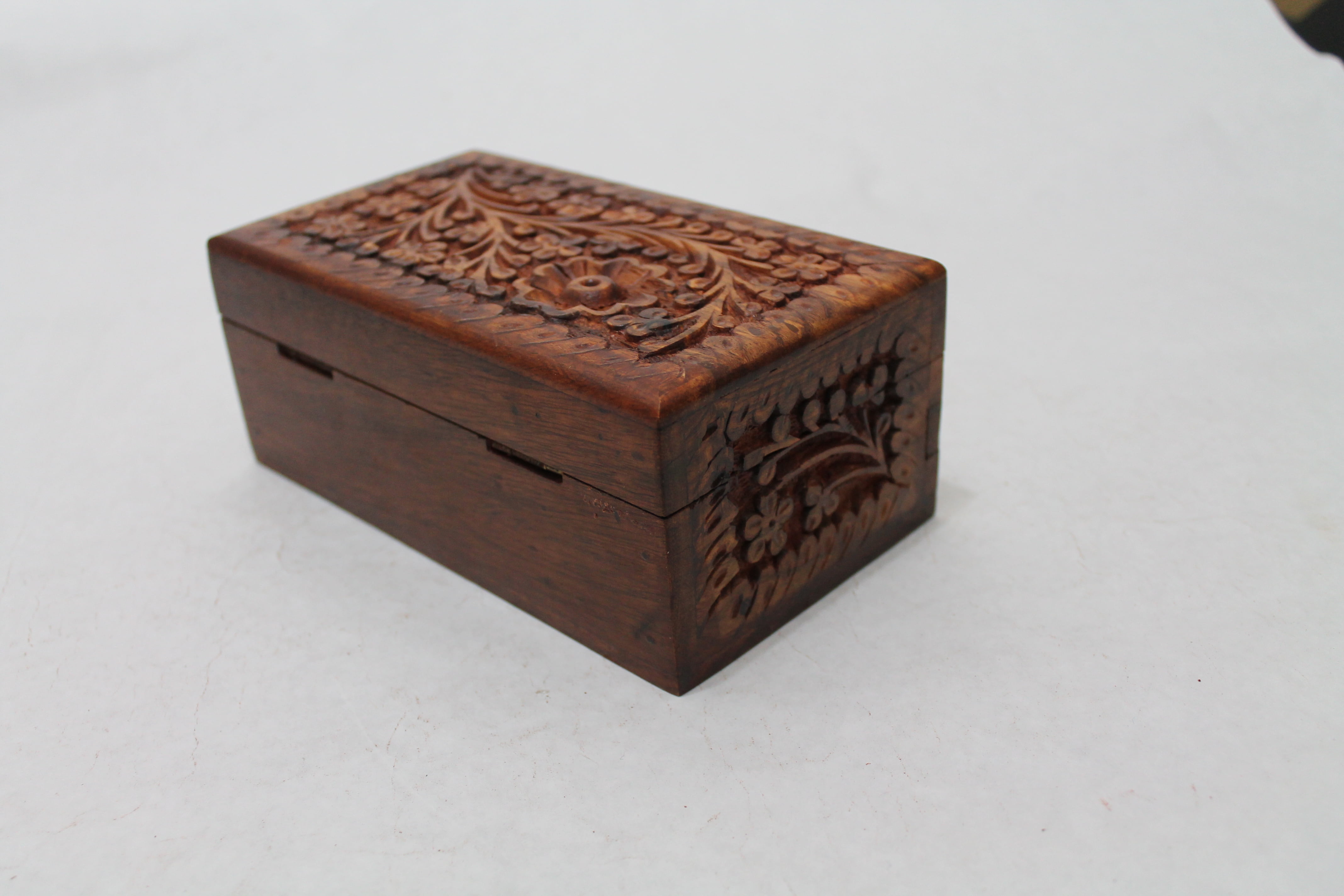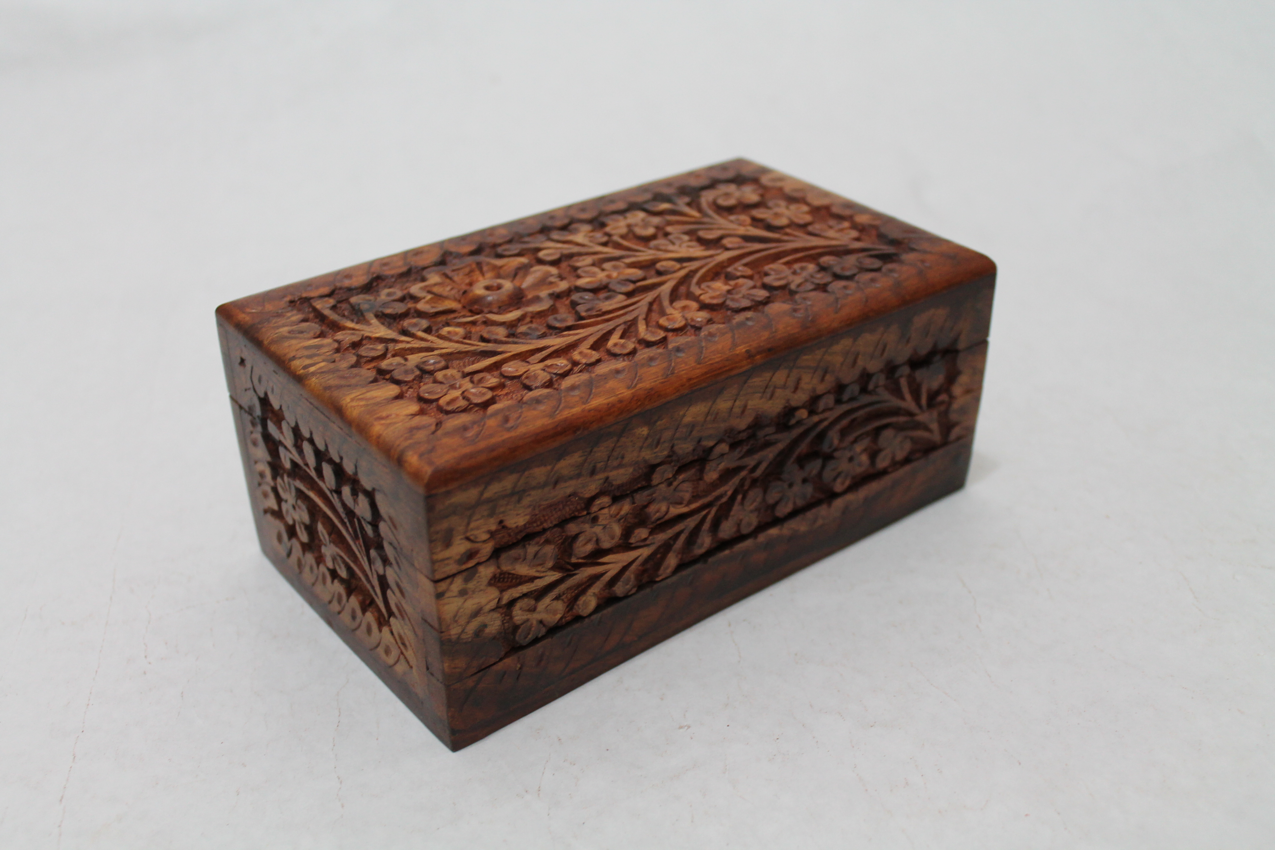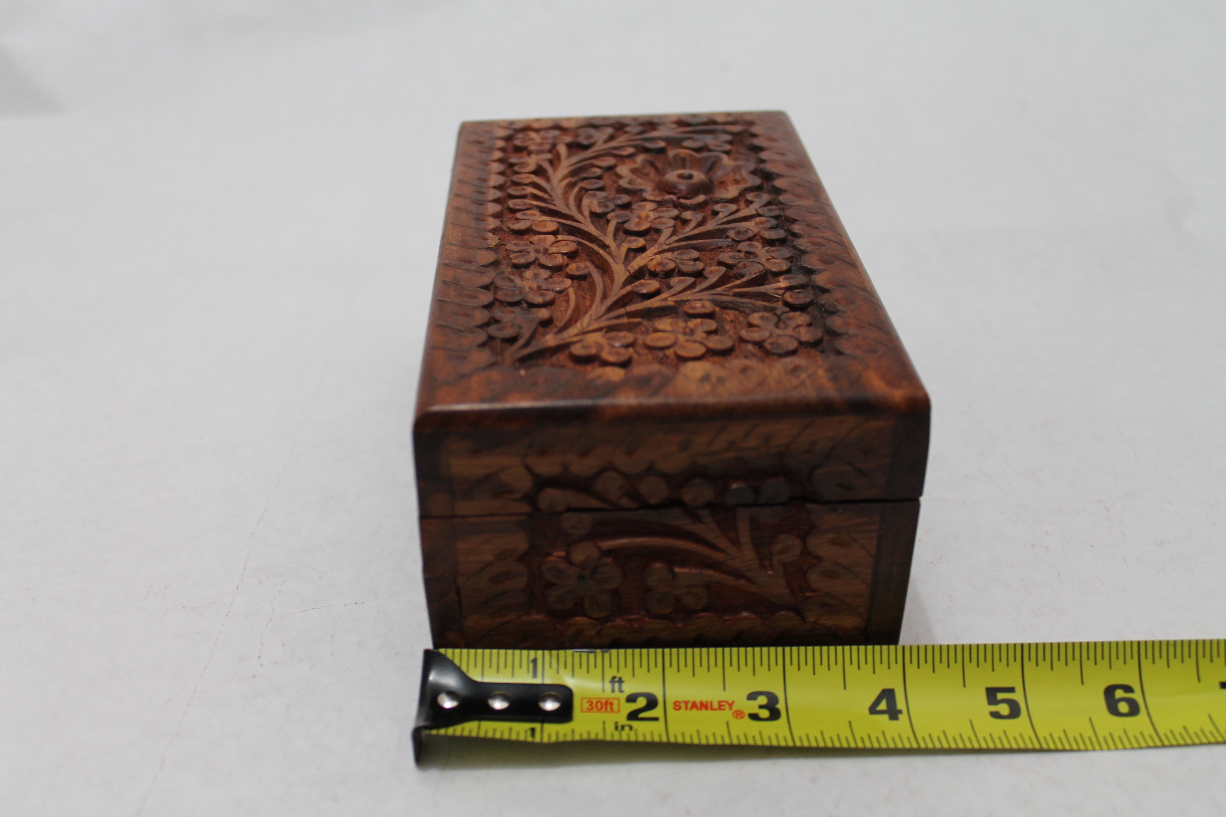 Valentine’s Day Gift Hers Wooden Precious Stone Box Special Day Lovely Gift Jewelry Accessories Box with Secret Lock Child Resistant Hand Carving Floral Designs 6’x4’x3′