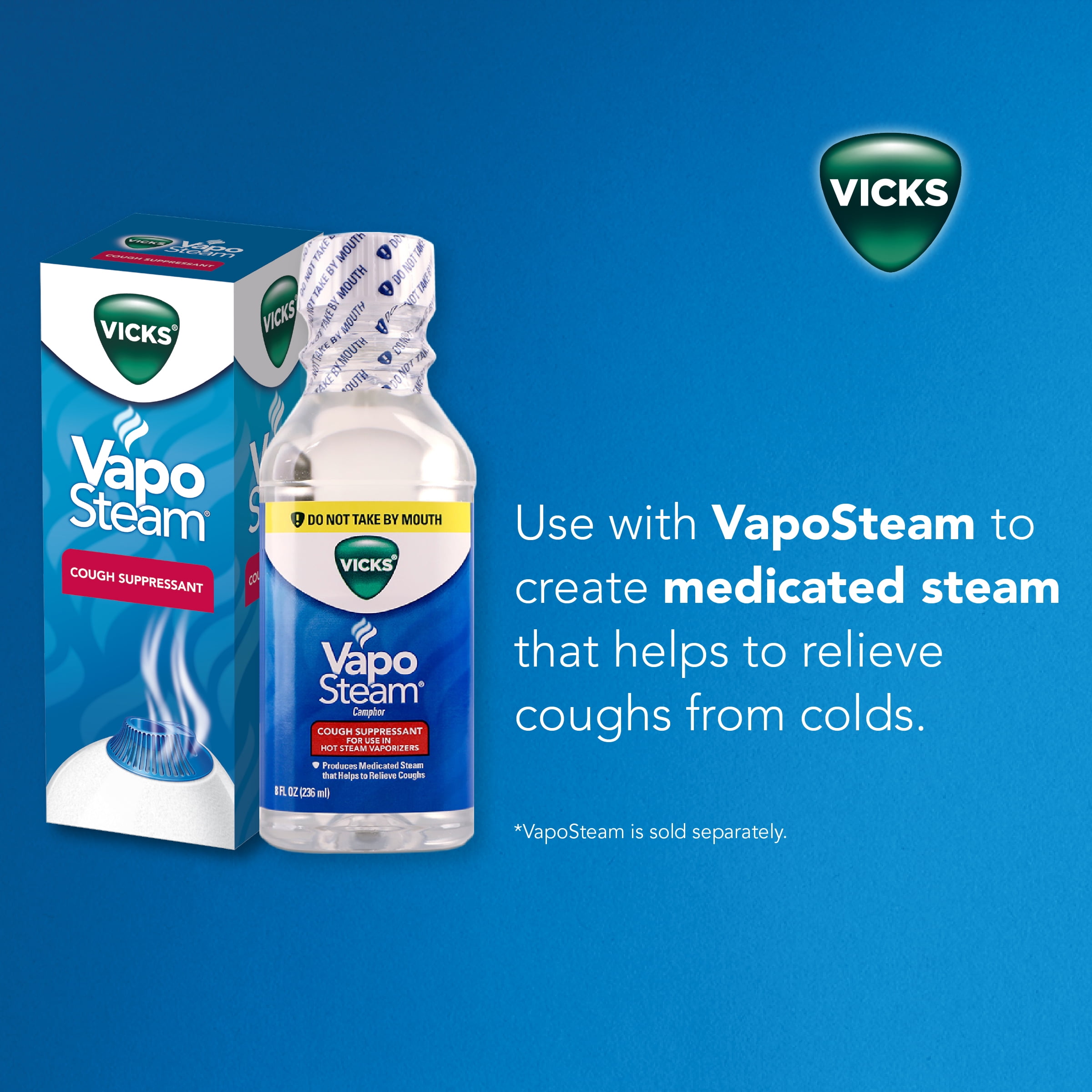 - Has a medicine cup that’s compatible with Vicks Vapo steam or Kaz Inhalant, which are sold separately