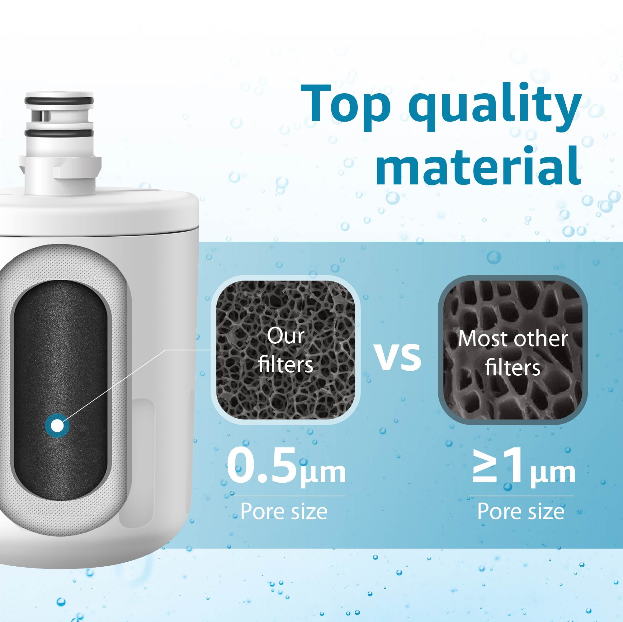 This Waterdrop refrigerator water filter replacement for LG® LT500P®, despite its affordable price, offers the best – a mix of prior filtration performance and important certifications from the well-known regulatory body in the industry – NSF 42 and NSF 372 certificates. Thanks to the 100% Sri Lankan superior coconut shell carbon block, this replacement for 5231JA2002A refrigerator water filter is effective against various impurities.