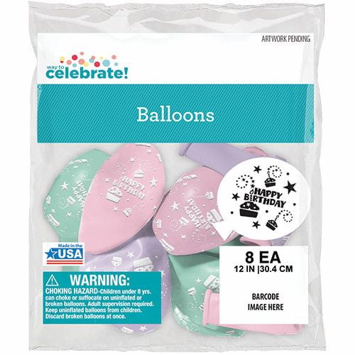 Way to Celebrate 12′ Happy Birthday Pastel Latex Balloons 8 Count