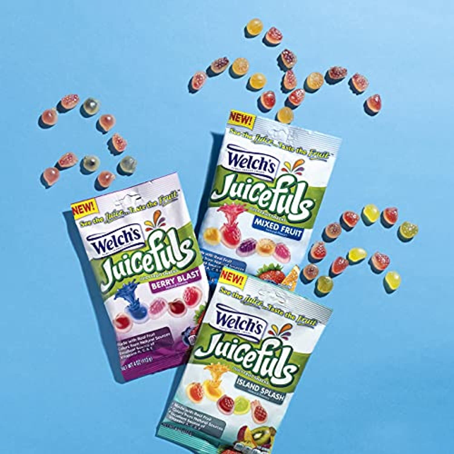 Welchs Juicefuls Juicy Fruit Snacks, Mixed Fruit, Berry Blast & Island Splash Fruit Gushers Variety Pack, Gluten Free, 4 Oz Sharing Size Bags (Pack Of 12)
