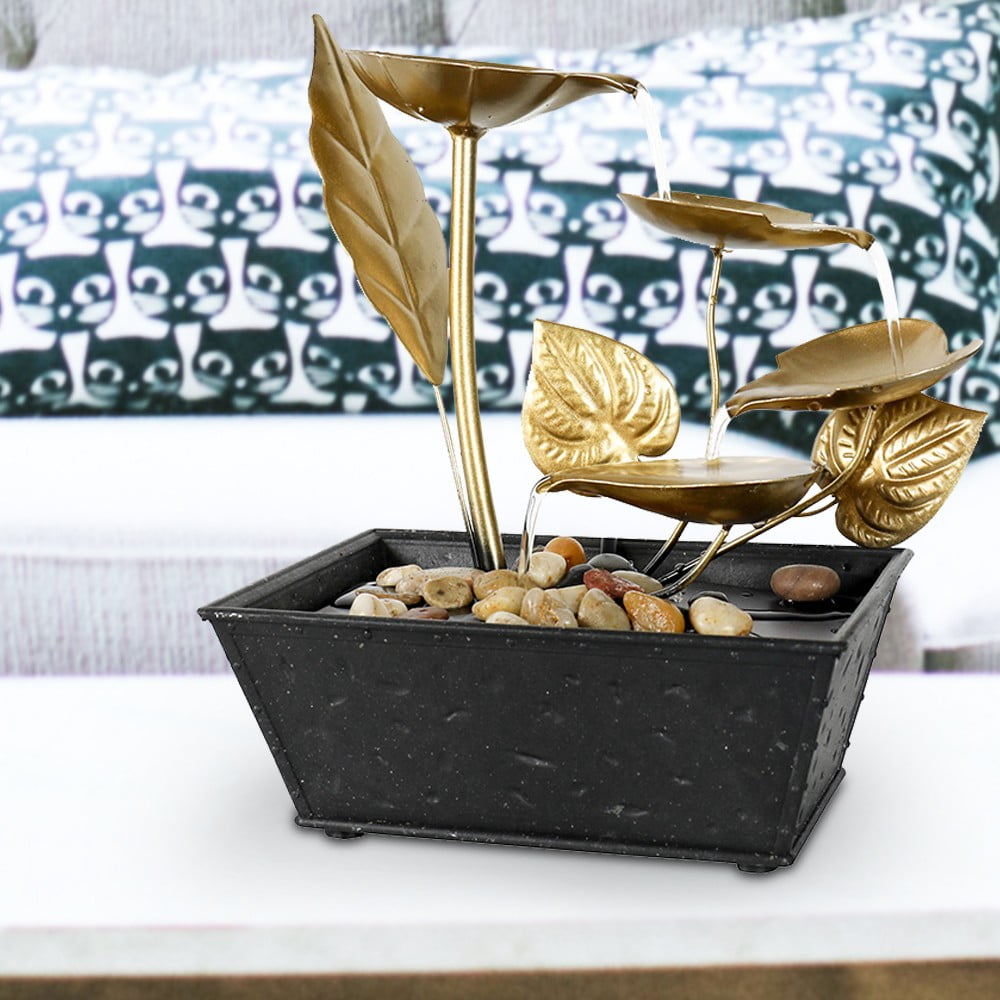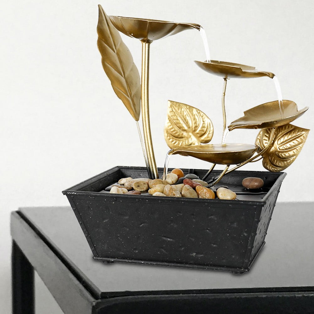 Willwolf Indoor Tabletop Wrought Iron Water Fountain for Home Office Decor,5 Tiers Modern Iron Leaves Fountain for Home Office Decor