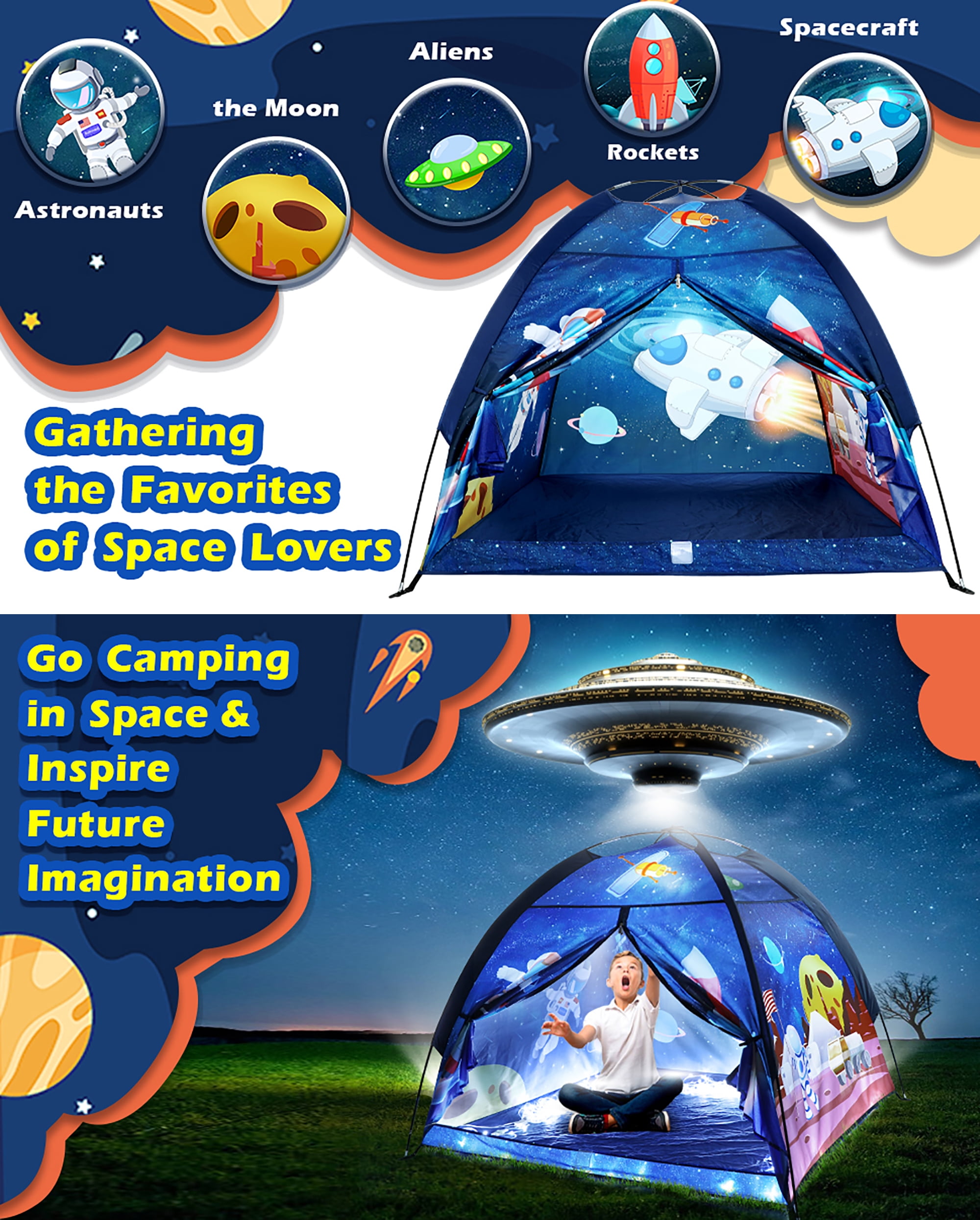 - Multi-scene usage: This Space World Tent for boys can be put in both indoor and outdoor, such as yard, party, bedroom, living room etc
