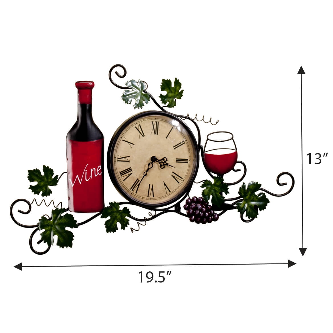 - Hand Painted – Wonderfully detailed, hand-painted metal displays intricate grapevines, wine bottle and glass surrounding elegant clock